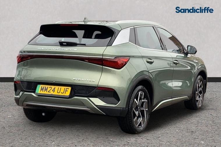 This 2024 BYD Atto 3 Design boasts exceptionally low mileage for its age, having just had its first service. This electric vehicle, presented in the Design trim, offers a substantial battery total capacity of 60 kWh, providing a maximum range of 260 miles when new. Charging is convenient, with a full charge at home using a 7kW charger taking approximately 9 hours and 42 minutes, while rapid public charging can take you from empty to 80% in just 40 minutes. The BYD Atto 3 Design stands out with its impressive electric performance and practicality. Its generous boot space is a notable highlight, offering ample room for your luggage or shopping, making it a versatile choice for everyday use and longer journeys. The low mileage and recent servicing indicate a well maintained vehicle, suggesting it offers a superior ownership experience compared to other similar electric cars on the market.