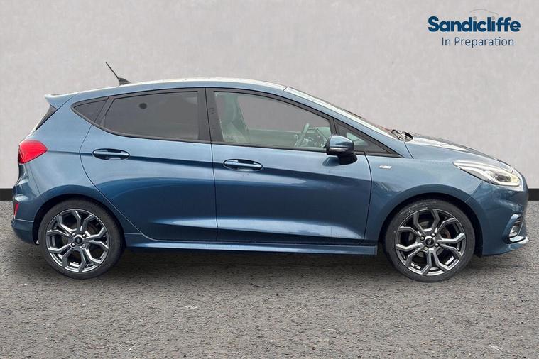 Sandicliffe Nottingham FordStore is proud to present this 2020 Ford Fiesta 1.0 EcoBoost ST-Line 5dr, finished in stunning Chrome Blue. This sleek and efficient Supermini offers a dynamic driving experience, modern technology, and excellent fuel economy, making it an ideal choice for families and long journeys. Engine: Powering this little toy is a 1.0-litre EcoBoost Petrol engine, this Fiesta delivers Plenty of strong performance partnered with enhanced efficiency making it perfect for both city driving and motorway cruising. Tech and other features: This model has equipped, 18-inch alloy wheels, ST-Line eye catching body styling, LED daytime running lights, and rear parking sensors. Inside, enjoy a touchscreen infotainment system with Apple CarPlay & Android Auto, Satellite Navigation, Climate Control, Bluetooth connectivity, and Cruise Control, ensuring a comfortable and connected drive. With an insurance group of 12E, this Ford Fiesta is a stylish and practical choice. As a trusted retailer, our technicians ensure all our vehicles are prepared to the highest standard. For added peace of mind, we also provide a minimum 6-month MOT. Don’t miss out—experience the 2020 Ford Fiesta ST-Line at Sandicliffe Nottingham FordStore. Contact us today to arrange a test drive!