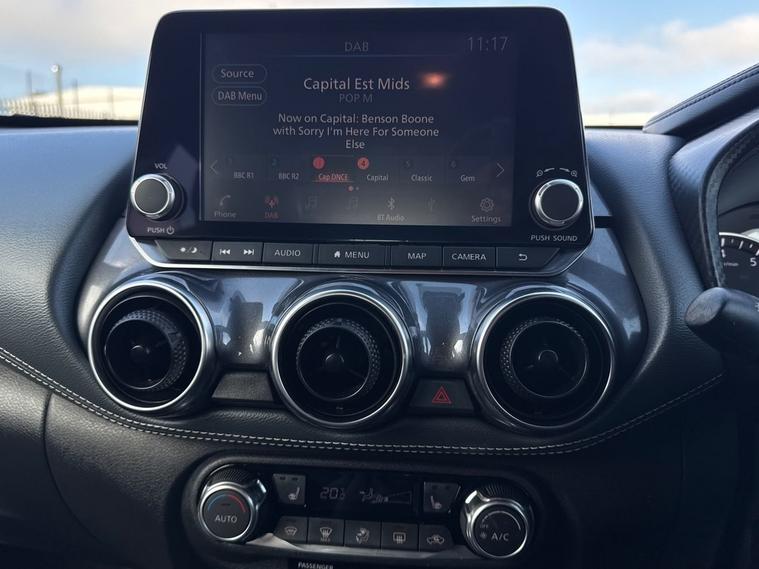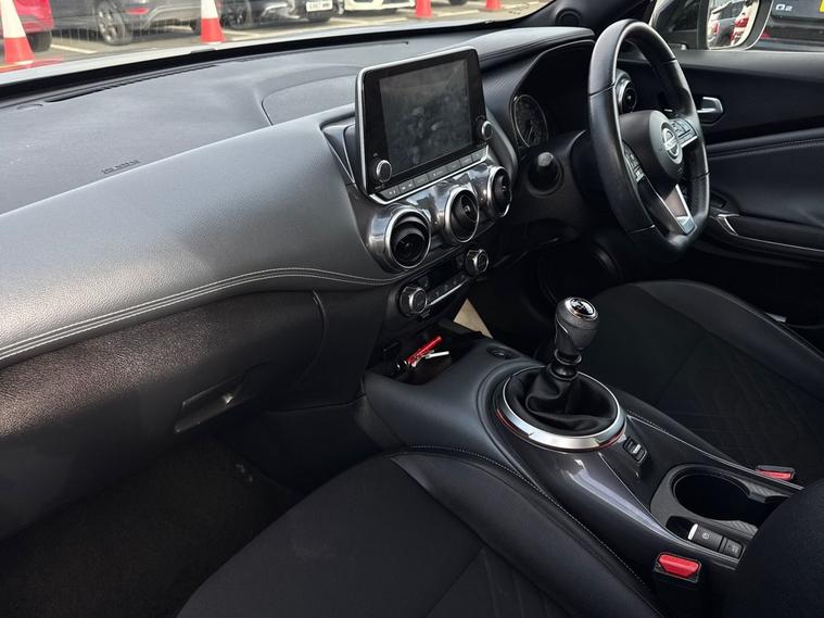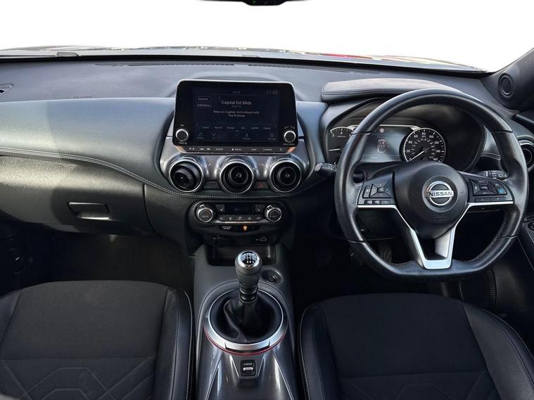 The 2022 Nissan Juke in Tekna trim combines distinctive SUV styling with a 1.0â€litre turbocharged petrol engine producing around 114â€BHP and 200â€Nm torque. It’s mated to either a manual 6‑speed gearbox or a smooth automatic option (DCT), giving a confident drive both around town and on longer trips. Performance & Fuel Economy This Juke’s 1.0â€DiG‑T unit offers a good balance of efficiency and everyday performance: Power: 114â€BHP Torque: 200â€Nm 0‑62â€mph: Around 10.7â€seconds Top speed: ~112â€mph Fuel economy: Around 46–48â€mpg combined (WLTP) COâ‚‚: ~130–140â€g/km depending on spec. That economy makes it a practical choice for daily driving, with a 46‑litre fuel tank and sensible running figures that help reduce visits to the pumps. Interior & Practicality Inside, the Juke delivers a comfortable cabin for five with a good level of standard equipment on Tekna trim, and a boot capacity of around 422â€litres — useful for weekly shopping, luggage and weekend gear. Driver and passenger space is friendly to everyday needs, with supportive seating and a well‑laid‑out dash that’s easy to use. Visibility and cabin refinement are competitive for the class, making longer journeys relaxed as well as daily commutes. Tekna Specification & Features The Tekna trim adds a strong equipment list that often includes: NissanConnect touchscreen with phone integration (Apple CarPlay & Android Auto) Advanced safety systems (lane assist, emergency braking, traffic sign recognition) Rear parking sensors or camera Cruise control and drive‑mode selection Stylish 19‑inch alloy wheels that enhance stance and ride character Keyless entry with push‑button start Premium sound and connectivity features on many examples This level of specification makes the Juke feel well‑equipped for modern driving and family use. Driving Impressions The Juke’s compact size and light steering help it feel agile in urban environments, while the turbo engine delivers enough power for smooth overtakes and motorway cruising. Ride quality is comfortable for its size, and the higher seating position adds a confident driving feel compared with a standard hatch. Why It Works as a Daily Car As a compact SUV, the Juke fits well for many drivers thanks to: Sharp styling that stands out on the road Balanced performance and fuel economy for everyday use Practical interior space and a sensible boot Comprehensive safety and tech features in Tekna trim Easy driving experience with smooth responses in traffic or on longer runs If you’re looking at examples today, checking current mileage and specific equipment at dealer's website can help you find the right 2022 Juke for your needs, and you’ll also see part‑exchange and finance options available when you’re ready to buy.
