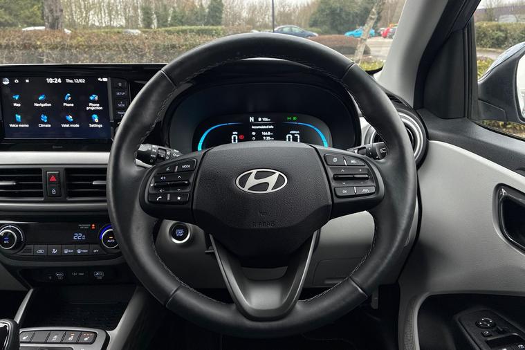 Sandicliffe Nottingham FordStore is proud to present this 2024 Hyundai i10 Automatic 5dr, finished in eye-catching Chameleon paint. Compact, stylish, and packed with modern technology, this i10 is the perfect city car with the comfort and convenience you’d expect from a much larger vehicle. Engine & Performance Powered by an efficient petrol engine paired with a smooth automatic transmission, the i10 delivers effortless driving and excellent fuel economy. Light steering, compact dimensions, and superb visibility make it ideal for urban driving, while remaining comfortable and composed on longer journeys. Technology & Features This well-equipped model comes with an impressive level of specification, including: 16-inch alloy wheels LED daytime running lights Touchscreen infotainment system Apple CarPlay & Android Auto Rear parking sensors with reversing camera Cruise control Air conditioning / Climate control (depending on trim) Bluetooth connectivity Lane keep assist Forward collision avoidance assist Inside, the Hyundai i10 offers a surprisingly spacious cabin with excellent headroom and a practical boot space, making it a fantastic choice for first-time drivers, commuters, or those looking for a reliable second car. With low running costs, Hyundai’s renowned reliability, and standout Chameleon paintwork, this 2024 Hyundai i10 Automatic is a stylish and practical choice. As a trusted retailer, all our vehicles are prepared to the highest standard by our fully trained technicians. For added peace of mind, this vehicle also comes with a minimum of 6 months MOT (where applicable). Don’t miss out — experience the 2024 Hyundai i10 Automatic at Sandicliffe Nottingham FordStore. Contact us today to arrange your test drive.