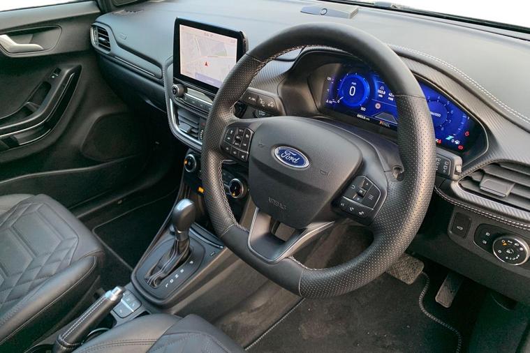 This 2023 Ford Puma ST-Line Vignale boasts exceptionally low mileage for its age, having covered just 6901 miles. This desirable 1.0L Petrol Hybrid model, finished in the ST-Line Vignale trim, meets Euro 6 emission standards and comes with a full service history, with its last service completed on 23rd September 2025 at 5847 miles. Experience the responsive performance of this Puma, which accelerates from 0 to 62mph in a swift 8.7 seconds. This impressive acceleration, combined with its low mileage and comprehensive service record, positions this Ford Puma ST-Line Vignale as a standout choice compared to other vehicles in its class.