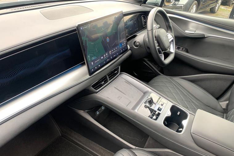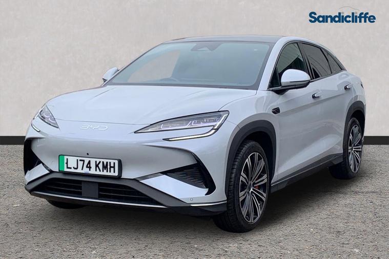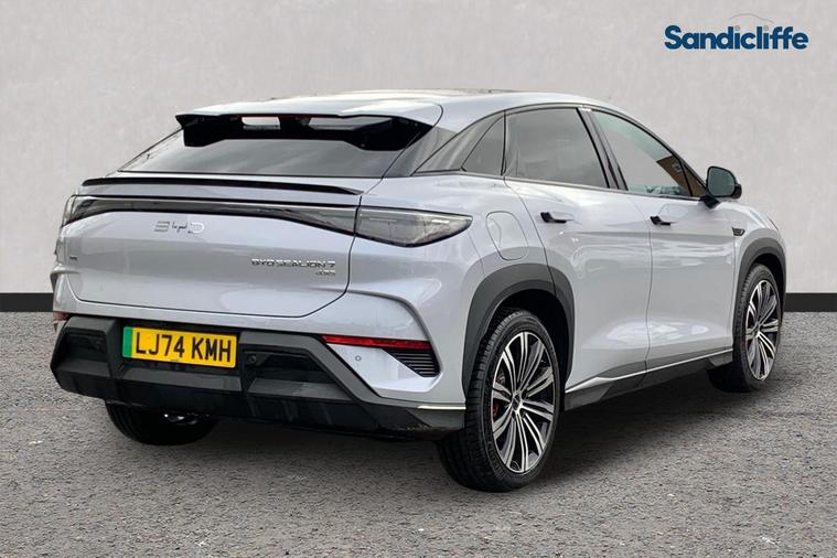 This 2025 BYD Sealion 7 Design boasts an exceptionally low mileage of just 4001 miles, having had its last service on 09 February 2026, with a full service history. This electric vehicle features a Four Wheel Drive drivetrain and a substantial 83 kWh battery, offering a maximum range of 283 miles when new. For home charging, a full charge using a 7kW source takes approximately 13 hours and 30 minutes, while rapid public charging can take the battery from empty to 80% in as little as 36 minutes. The BYD Sealion 7 Design is designed for performance and practicality, accelerating from 0 to 62mph in a swift 4.5 seconds, demonstrating its capability compared to other vehicles in its class. This acceleration highlights its dynamic driving experience. Furthermore, it offers a large boot space, making it a versatile choice for families and those needing ample storage