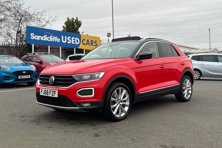 Sandicliffe Nottingham FordStore is proud to present this 2018 Volkswagen T-Roc 1.5 TSI EVO SEL 5dr, finished in stunning Red. This sleek and efficient SUV offers a dynamic driving experience, modern technology, and excellent fuel economy, making it an ideal choice for families and long journeys. Engine: Powering this Practical Family Vehicle is a 1.5-litre TSI Petrol engine, this T-Roc delivers Plenty of strong performance partnered with enhanced efficiency making it perfect for both city driving and motorway cruising. Tech and other features: This model has equipped, 18-inch alloy wheels, Striking eye catching body styling, LED daytime running lights, and rear parking sensors. Inside, enjoy a touchscreen infotainment system with Apple CarPlay & Android Auto, Satellite Navigation, Climate Control, Bluetooth connectivity, and Cruise Control, ensuring a comfortable and connected drive. With an insurance group of 12E, this VW T-Roc is a stylish and practical choice. As a trusted retailer, our technicians ensure all our vehicles are prepared to the highest standard. For added peace of mind, we also provide a minimum 6-month MOT. Don’t miss out—experience the 2018 Volkswagen T-Roc TSI at Sandicliffe Nottingham FordStore. Contact us today to arrange a test drive!