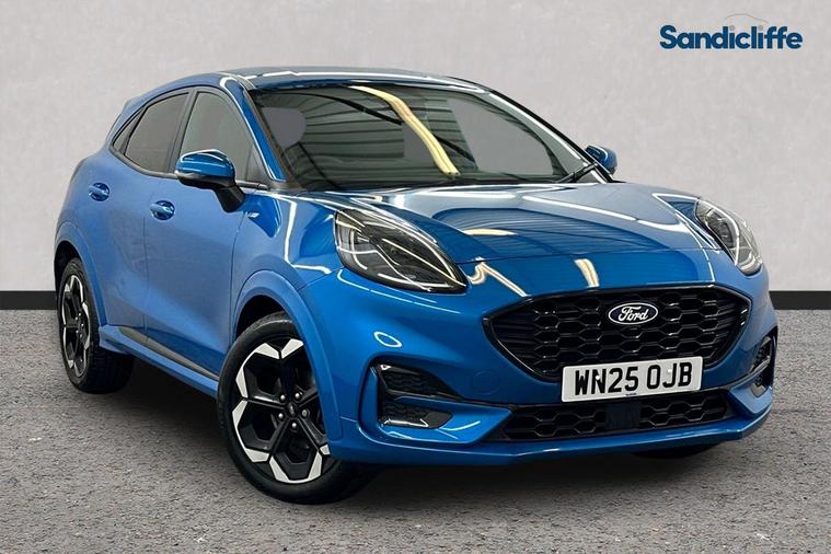 This 2025 Ford Puma ST-Line X is presented in exceptional condition, having had only one owner from new . This stylish compact SUV is powered by an efficient 1.0L Petrol Hybrid engine, meeting Euro 6 emission standards. It comes equipped with a helpful Rear View Camera and Rear Parking Sensors, complete with Parking Assistance, making manoeuvring a breeze. The striking LED Headlights with Daytime Running Lights ensure excellent visibility, while the Electronic Automatic Temperature Control provides a comfortable cabin environment. Inside, you'll find a sophisticated 12in Landscape Touchscreen Display offering seamless integration with Wireless Apple CarPlay and Android Auto. Enjoy an immersive audio experience with the Premium B&O Audio System featuring 10 speakers, all managed through Ford SYNC Navigation. Stay connected with FordPass Connect and Emergency Assist. The Ford Keyfree System allows for effortless Keyless Entry and starting with the Ford Power Starter Button. Performance is also a strong point, with an impressive 0-62mph acceleration time of just 8.7 seconds, demonstrating its dynamic capabilities compared to other vehicles in its class. At Sandicliffe, we’re proud to be a family-owned business that’s been supporting motorists across the East Midlands for over 75 years representing BYD, Ford, Mazda and MG. Our commitment to quality, care, and community means you can buy with complete confidence, our technicians are highly qualified ensuring that our vehicles are meticulously prepared and maintained. Additionally, we offer a minimum 6-month MOT for added assurance. This car is Located at our Loughborough site Derby Road Loughborough LE115HN