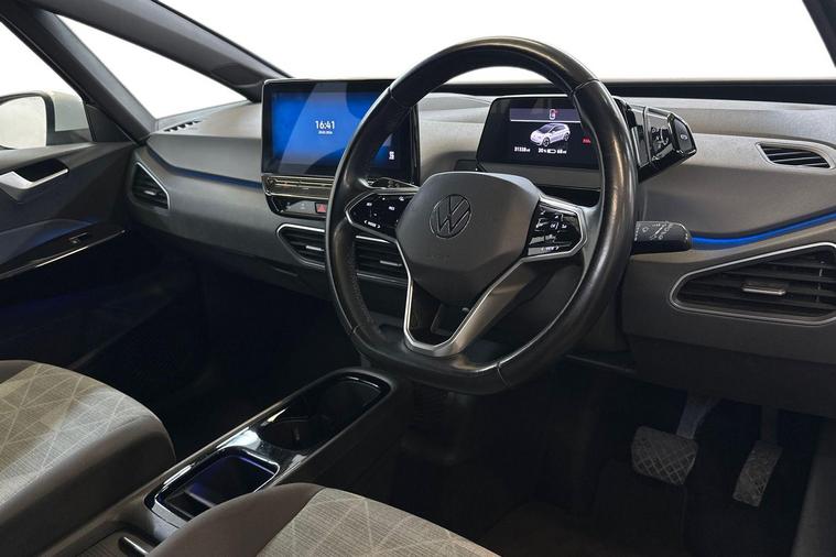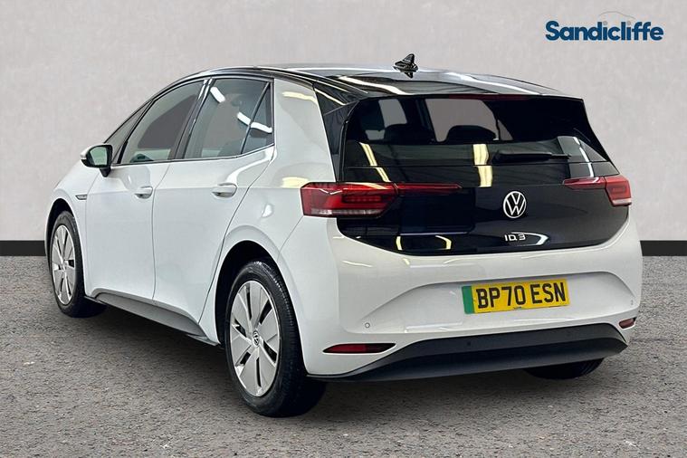 This 2020 Volkswagen ID.3 Pro Performance Life boasts exceptionally low mileage for its age, having covered just 31, 282 miles and recently receiving its first service at 0 miles. As an electric vehicle, it offers a smooth and quiet driving experience, powered by a 62 kWh battery that provided a maximum range of 263 miles when new. This particular Life trim model comes equipped with a host of desirable features, including front and rear parking sensors with parking assistance, adaptive cruise control with front assist and city emergency braking, and a 1 zone climatronic system for effortless climate control. The comfort package adds heated seats and a heated steering wheel, perfect for colder journeys, while all LED headlights with reflector technology ensure excellent visibility. The Volkswagen ID.3 Pro Performance Life stands out with its impressive acceleration, reaching 0 to 62 miles per hour in a swift 7.3 seconds, demonstrating its dynamic performance. Its large boot space offers practical storage solutions for everyday needs and longer trips. Charging is convenient, with a full charge at home on a 7kW charger taking approximately 9 hours and 30 minutes, and rapid public charging from empty to 80% achievable in just 37 minutes. These highlights collectively position this ID.3 as a compelling choice for those seeking an efficient, well equipped, and engaging electric car.