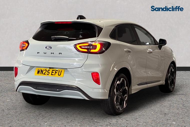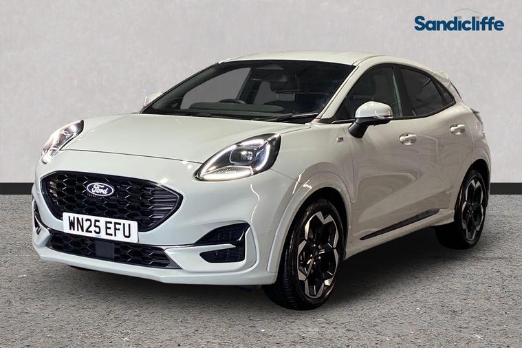 Sandicliffe Nottingham FordStore is proud to present this 2025 Ford Puma 1.0 EcoBoost ST-Line X 5dr Auto, finished in striking Solar Silver. This sleek and efficient compact SUV delivers a dynamic driving experience, modern technology, and impressive fuel economy — making it an excellent choice for families, commuters, and longer journeys alike. Engine & Performance Under the bonnet, you’ll find the award-winning 1.0-litre EcoBoost petrol engine, paired with a smooth 7-speed automatic gearbox. This combination offers responsive performance with excellent efficiency, making it perfectly suited to both city driving and motorway cruising. Technology & Features This well-equipped Titanium model includes: 18-inch alloy wheels Eye-catching exterior styling LED daytime running lights Rear parking sensors Touchscreen infotainment system Apple CarPlay & Android Auto Satellite Navigation Climate control Bluetooth connectivity Cruise control Inside, the Puma offers a comfortable, spacious cabin designed around driver convenience and everyday practicality. With an insurance group of 12E, this Ford Puma is a stylish yet economical choice. As a trusted retailer, all our vehicles are prepared to the highest standard by our fully trained technicians. For added peace of mind, this vehicle also comes with a minimum of 6 months MOT. Don’t miss out — experience the 2025 Ford Puma ST-Line X at Sandicliffe Nottingham FordStore. Contact us today to arrange your test drive.