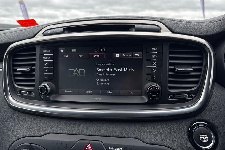 Sandicliffe Nottingham Ford are pleased to present this spacious and well-equipped Kia Sorento 2.2 CRDi KX-4, a premium seven-seat SUV that combines strong diesel performance, impressive practicality and a high level of comfort. Powered by a 2.2-litre CRDi turbo diesel engine producing around 197PS, paired with a smooth automatic transmission and intelligent all-wheel drive, the Sorento delivers confident performance with excellent long-distance comfort. It can accelerate from 0–62 mph in around 9.6 seconds and reach a top speed of approximately 124 mph, while achieving around 42 mpg combined, making it ideal for both family journeys and longer motorway trips. The range-topping KX-4 specification offers an impressive level of equipment, including premium interior features and advanced driver assistance systems designed to make every journey comfortable and convenient. Inside, the Sorento provides a versatile seven-seat layout, offering excellent space for passengers and luggage. The high-quality interior, comfortable seating and elevated driving position ensure a refined and enjoyable driving experience. Key Features: 2.2 CRDi turbo diesel engine – 197PS Automatic transmission Intelligent all-wheel drive (AWD) KX-4 top-specification model Satellite navigation with touchscreen display 360° Around View camera & parking sensors Heated and ventilated leather seats Panoramic sunroof Adaptive cruise control Keyless entry with push-button start 19" alloy wheels With its powerful diesel engine, premium specification and excellent practicality, the Kia Sorento is a fantastic choice for drivers looking for a comfortable and capable family SUV. Available now at Sandicliffe Nottingham Ford. Contact our team today to arrange your viewing or test drive.