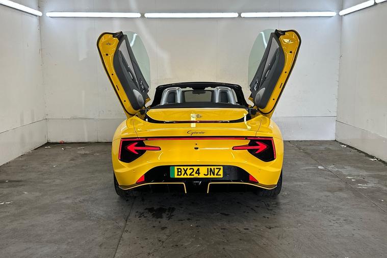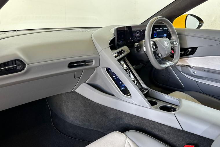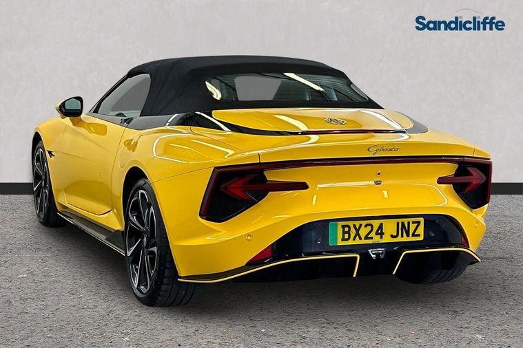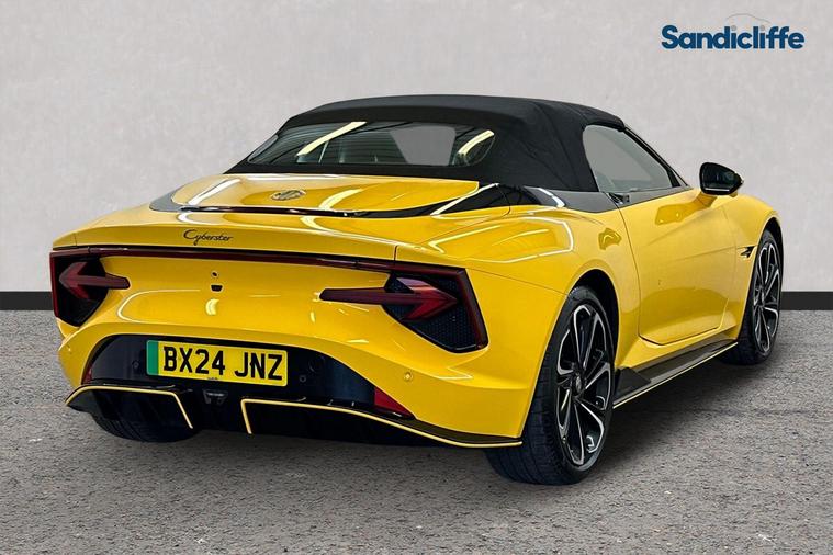 With only one previous owner, this 2024 MG Cyberster GT is a superb example of a modern electric sports car. As an MG manufacturer-approved vehicle, this four-wheel drive electric car combines performance with practicality. The car is equipped with a host of features designed to enhance your driving experience, including front and rear parking sensors with parking assistance, a 360-degree parking camera, heated seats, adaptive cruise control, and keyless entry. The Cyberster GT offers a substantial 77 kWh battery, providing a maximum range of 276 miles when new. Charging at home using a 7kW charger takes approximately 11 hours and 40 minutes, while rapid public charging can boost the battery from empty to 80% in just 43 minutes. The large boot offers more space than similar vehicles, making it a practical choice for everyday use.MG Cyberster 375kW GT Dual Motor 77 kWh 2dr AWD Auto