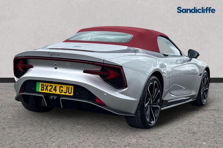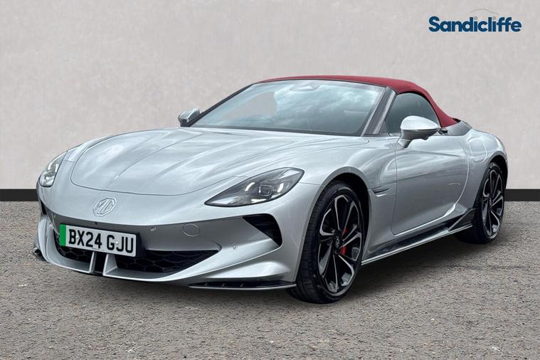 Sandicliffe MG Nottingham are proud to present this breathtaking and futuristic MG Cyberster 375kW GT Dual Motor, a fully electric sports car that redefines performance, style, and open-top driving. Powered by a cutting-edge dual motor all-wheel drive system producing an impressive 375kW (approx. 510PS), this Cyberster delivers truly exhilarating performance. Accelerating from 0–62 mph in just 3.2 seconds, it offers supercar-level speed with the instant torque and smooth refinement of electric power. The 77kWh battery provides a driving range of up to approximately 276 miles (WLTP), while rapid charging capability allows for quick top-ups—making it as practical as it is exciting. Designed to turn heads, the Cyberster features a sleek convertible body, dramatic electric scissor doors, and bold modern styling that pays homage to MG’s sports car heritage. Inside, the cabin is equally impressive, featuring a wraparound triple-screen cockpit, premium materials, and advanced technology, creating a truly immersive driving experience. Key Features: Dual motor all-wheel drive (AWD) – 375kW / approx. 510PS 77kWh battery with up to ~276 miles range (WLTP) Automatic transmission (single-speed EV) 0–62 mph in just 3.2 seconds Fully electric – zero emissions driving Convertible soft-top roof Electric scissor doors Wraparound triple-screen digital cockpit Satellite navigation Apple CarPlay & Android Auto connectivity Bose premium sound system Heated seats and heated steering wheel 360-degree camera Adaptive cruise control and advanced safety systems LED headlights and signature lighting 20" alloy wheels With its combination of stunning design, cutting-edge electric performance, and premium technology, the MG Cyberster GT is a truly unique sports car that offers an unforgettable driving experience. Available now at Sandicliffe MG Nottingham. Contact our team today to arrange your viewing or test drive.