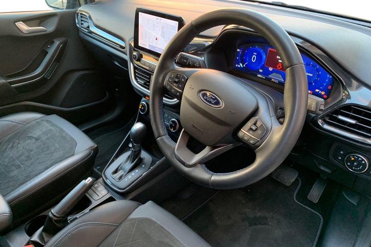 This 2022 Ford Fiesta T Active X presents an exceptional opportunity with its remarkably low mileage of just 4258 miles, further enhanced by a full service history, with the most recent service completed on 2024-12-09 at 2494 miles. This Euro 6 compliant 1.0L Petrol Hybrid model, in the Active X trim, offers a blend of efficiency and modern design. The Ford Fiesta T Active X is designed for those who appreciate responsive performance, achieving 0-62mph in a swift 9.6 seconds. This acceleration figure indicates a more dynamic driving experience compared to many other vehicles in its class, making it a compelling choice for everyday journeys and longer trips alike.