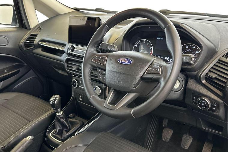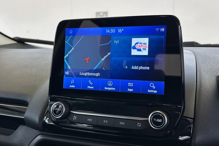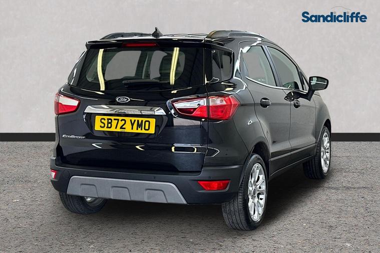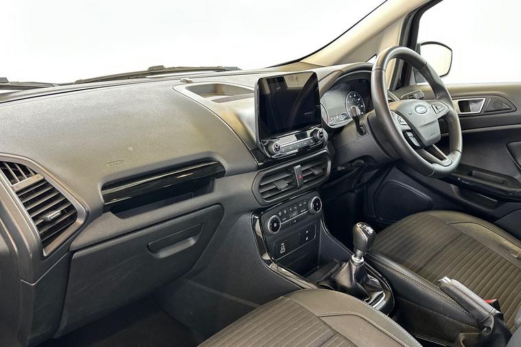High Spec Titanium | 1 Owner | Tech-Packed SUV The Personal Touch The Ford EcoSport Titanium offers a more refined, sophisticated take on the compact SUV. Registered in early 2023 and cared for by just one owner from new, this sleek Black model is the perfect choice for those who want a higher driving position and luxury features without the bulk of a full-sized 4x4. It’s been kept in fantastic condition and is ready for its next chapter. Features You’ll Love Every Day The "Titanium" trim is all about comfort and high-end technology, making every journey feel more premium: Total Confidence: Parking is a breeze thanks to the integrated Rear View Camera and rear sensors—perfect for navigating tight city spots with ease. Winter Ready: No more scraping ice on frosty mornings with Ford’s famous Quickclear Heated Windscreen—it clears your view in seconds. Smart Connectivity: Stay connected with Apple CarPlay & Android Auto, allowing you to use your favorite navigation and music apps directly on the 8" touchscreen. Premium Comfort: Relax into the Partial Leather (Sensico) interior and enjoy the convenience of Climate Control and Cruise Control on every trip. Effortless Driving: The elevated seating position gives you a commanding view of the road, making it easy to get in and out while providing great visibility. Performance & Specs Engine: 1.0L EcoBoost (125 bhp) – Ford’s multi-award-winning engine that is punchy, efficient, and ULEZ compliant. Transmission: 6-Speed Manual for a smooth and engaging drive. Style: Finished in Black with Titanium-specific silver roof rails and 17" alloy wheels. History: 1 Private Keeper from new. At Sandicliffe, we’re proud to be a family-owned business that’s been supporting motorists across the East Midlands for over 75 years representing BYD, Ford, Mazda and MG. Our commitment to quality, care, and community means you can buy with complete confidence; our technicians are highly qualified ensuring that our vehicles are meticulously prepared and maintained. This car is Located at our Loughborough site: Derby Road Loughborough LE11 5HN