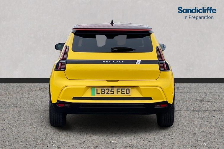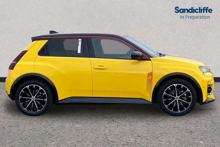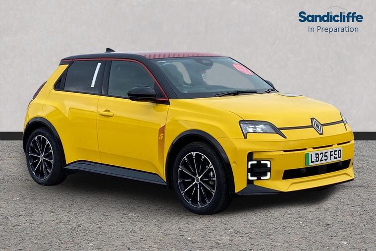 2025 RENAULT 5 E-TECH 110kW Iconic Five Comfort Range 52kWh 5dr Auto (LB25FEO) The wait is over—the icon is back. This Pop Yellow/Black Renault 5 E-Tech is a stunning, nearly-new example of the most talked-about electric car of the year. As the flagship Iconic Five edition with the larger 52kWh battery, it offers the perfect mix of retro style and class-leading range. Why this Renault 5 E-Tech stands out: Iconic Five Specification: The highest trim level featuring 18-inch diamond-cut alloys, a bespoke interior with tricolour stitching, and the signature "5" bonnet charge indicator. Superior Range & Efficiency: Equipped with the 52kWh Comfort Range battery and a standard-fit Heat Pump, ensuring maximum range and efficiency even in cold weather. Tech-Focused Cabin: Features the 10.1-inch OpenR Link multimedia system with Google built-in, wireless Apple CarPlay/Android Auto, and the "reno" virtual assistant. Winter Comfort: Fully loaded for the colder months with Heated Front Seats and a Heated Steering Wheel included as standard. The Essentials: Rapid Charging: 100kW DC charging capability allows you to go from 10% to 80% charge in approximately 30 minutes at a public rapid charger. Performance: 150 bhp (110kW) motor delivering instant torque and a punchy 0-62mph time of just 7.9 seconds. Condition: An exceptionally fresh vehicle with only one owner from new and its first MOT not due until April 2028. Practicality: A surprisingly deep 326-litre boot and a compact turning circle, making it the ultimate stylish city car. At Sandicliffe, we’re proud to be a family-owned business that’s been supporting motorists across the East Midlands for over 75 years representing BYD, Ford, Mazda and MG. Our commitment to quality, care, and community means you can buy with complete confidence, our technicians are highly qualified ensuring that our vehicles are meticulously prepared and maintained. Additionally, we offer a minimum 6-month MOT for added assurance. This car is Located at our Loughborough site: Derby Road Loughborough LE11 5HN Please call us today to arrange a viewing or a test drive!