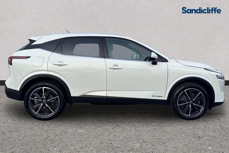 Sandicliffe MG Nottingham are pleased to present this advanced and highly efficient 2023 Nissan Qashqai 1.5 e-POWER Tekna Automatic, a sophisticated SUV that combines innovative hybrid technology, premium comfort, and everyday practicality. Powered by Nissan’s unique 1.5-litre e-POWER hybrid system producing 190PS, paired with a smooth single-speed automatic transmission, this Qashqai delivers a refined and responsive driving experience. Unlike conventional hybrids, the electric motor alone drives the wheels, while the petrol engine acts as a generator—giving you the feel of an electric vehicle without the need to plug in. The Tekna trim offers a high level of specification, featuring a premium interior with advanced technology and driver assistance features designed to maximise comfort and convenience. Key Features: 1.5-litre e-POWER hybrid system – 190PS Single-speed automatic transmission Self-charging hybrid technology Tekna high-spec trim Satellite navigation Apple CarPlay & Android Auto Digital driver display Bose premium sound system Heated front seats Heated steering wheel Dual-zone climate control Adaptive cruise control 360-degree parking camera Front and rear parking sensors Lane-keeping assist & traffic sign recognition Blind spot monitoring Pre-collision assist with autonomous emergency braking Keyless entry and push-button start Automatic headlights and wipers LED headlights and daytime running lights Alloy wheels Spacious 5-door SUV layout with generous boot capacity With its combination of innovative hybrid technology, premium specification, and excellent practicality, the Nissan Qashqai e-POWER Tekna is an excellent choice for drivers seeking a modern and efficient family SUV. Available now at Sandicliffe MG Nottingham. Contact our team today to arrange your viewing or test drive.