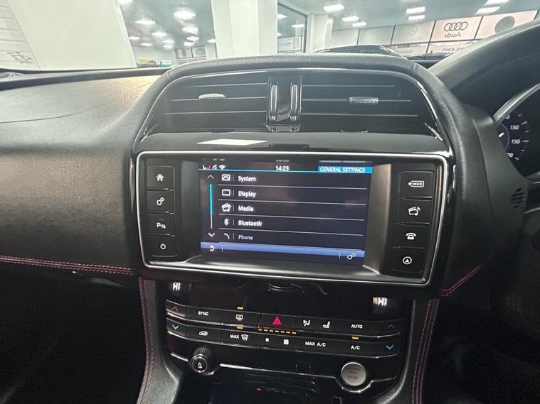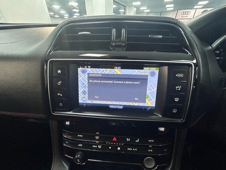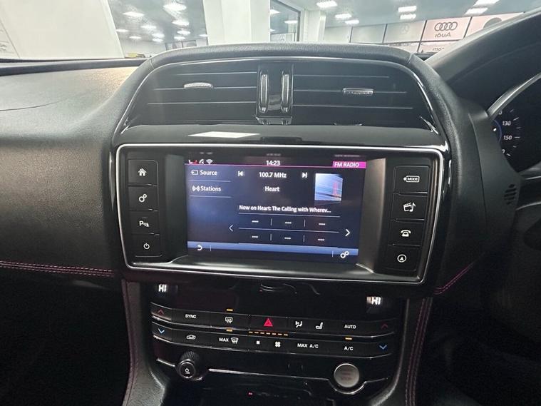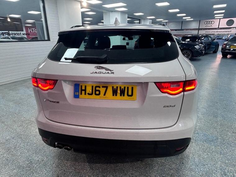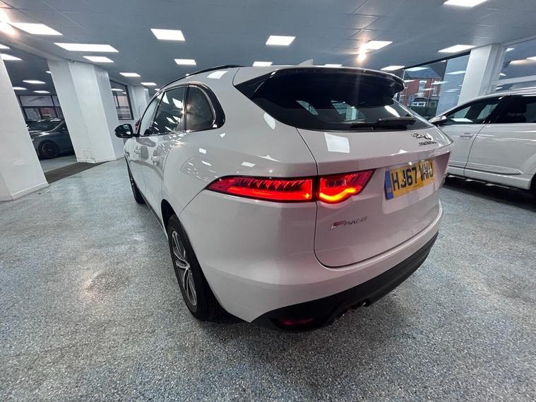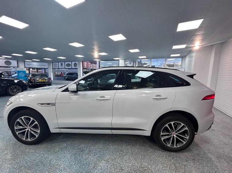 The 2017 Jaguar F-PACE 2.0 R-Sport 5d 178 BHP is a luxurious and performance-oriented SUV that combines dynamic driving with sophisticated design and advanced features. Powered by a 2.0-liter diesel engine, it delivers 178 brake horsepower (BHP), providing a potent and efficient driving experience suitable for both city cruising and long-distance journeys. The R-Sport trim level enhances the F-PACE's exterior with sporty design elements, 19-inch alloy wheels, a distinctive grille, and a rear spoiler, contributing to its overall athletic and modern aesthetic. Inside, the F-PACE 2.0 R-Sport offers a sumptuous and well-appointed cabin, featuring premium materials and cutting-edge technology. The SUV is equipped with Jaguar's InControl Touch Pro infotainment system, a Meridian sound system, navigation, and dual-zone climate control, providing a connected and comfortable driving experience. In terms of safety, the F-PACE is well-equipped with features such as autonomous emergency braking, lane departure warning, and a comprehensive airbag system, ensuring a secure and confident driving experience for all occupants. The SUV's handling is both composed and agile, delivering a sporty and enjoyable ride. Overall, the 2017 Jaguar F-PACE 2.0 R-Sport stands as a symbol of luxury and performance in the SUV segment, offering a blend of style, technology, and power that makes it a distinguished choice in its class.