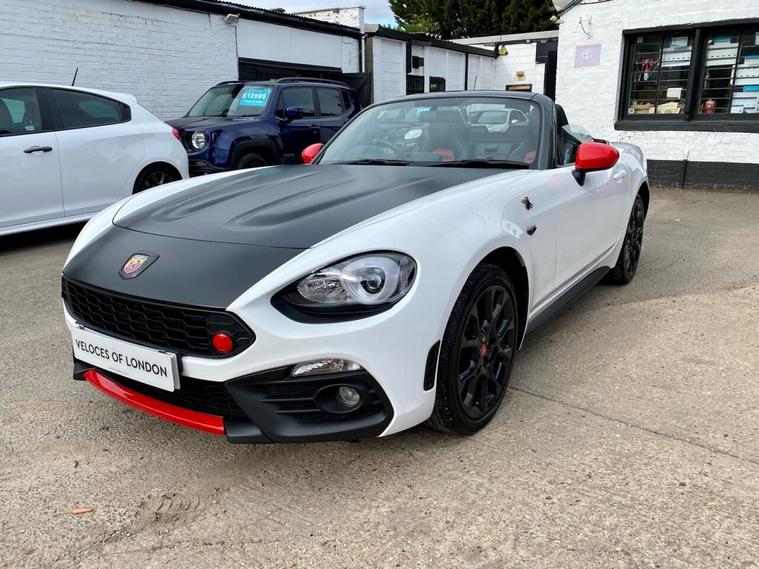 VELOCES ARE PLEASED TO OFFER FOR SALE THIS INCREDIBLY LOW MILEAGE 124 ABARTH MANUAL, FINISHED IN TURINI 1975 WHITE WITH FULL RED & BLACK LEATHER INTERIOR. THIS CAR IS EQUIPPED WITH TOUCH-SCREEN SATELLITE NAVIGATION ... CORSA RED COLOUR PACK ... THE MUCH SOUGHT AFTER HERITAGE PACK ... SPORTS LIMITED SLIP DIFFERENTIAL AKA ABARTH DAM ... START ENGINE BUTTON ... AUTOMATIC AIR CONDITIONING ... SOFT TOP WITH SOUNDPROOF LINER ... SPORTS FRONT BUMPER, SIDE SKIRTS AND REAR DIFFUSOR ... ACOUSTICALLY TUNED RECORD MONZA SPORTS EXHAUST ... DAB RADIO WITH 7 INCH TOUCHSCREEN MEDIA SYSTEM AND 2 USB PORTS ...17 INCH ABARTH CORSA WHEELS WITH RED BREMBO CALIPERS ... WINTER PACK WITH HEATED SEATS & MIRRORS ...PRIVATELY OWNED FROM NEW WITH FSH SERVICE HISTORY INCLUDING MAJOR CAMBELT SERVICE .. 170 BHP + 6 SPEED + 195 ROAD TAX ..ASK ABAOUT OUR AWARD WINNING ASCARI TUNING PACKAGES