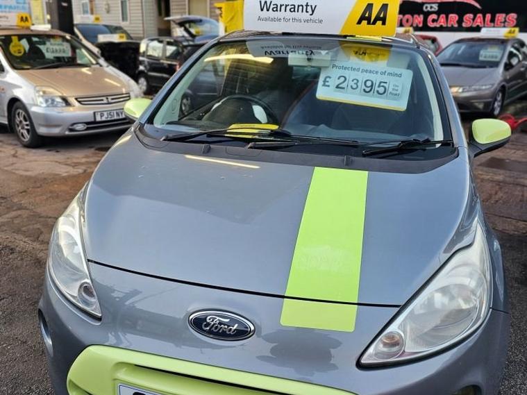 Here we have for sale a lovely 2009 ford ka zetec in a lovely metallic Grey with the lovely lime green stripes from factory. It is the small 1.2L petrol engine which is great for new or first drivers as they are cheap to insure and very economical to run. It has covered very low mileage for its age of just over 80000 miles backed by some service history. It will come with a full 12month mot with no advisories and a full service from ourselves upon purchase. Very clean car both cosmetically and mechanically. First to see will buy. Here at chorlton car sales we strive to deliver 100% customer satisfaction to all our customers therefore we offer a full 3month aa warranty for complete piece of mind. Extended warranty is available by the reputable aa warranties for up to 12months as we are approved dealers for them. They are the uks number one warranty company. We are now proudly part of the aa dealer promise as aa approved dealers which means you can buy through us with complete confidence. Delivery available. 5day driveaway insurance available.12month aa breakdown cover with all vehicles. All major cards accepted. All forms of payment accepted. Open 7days a week.