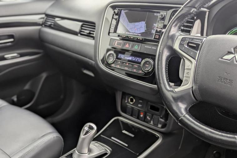 The 2017 Mitsubishi Outlander 2.0h 12kWh 4hs SUV is a versatile and eco-friendly plug-in hybrid that combines the efficiency of electric power with the flexibility of a petrol engine. Powered by a 2.0-liter petrol engine and a 12kWh battery, it delivers a combined output of 200 PS. The CVT automatic transmission and 4WD system provide smooth, responsive performance and enhanced traction in various driving conditions. Its Euro 6 (s/s) compliance ensures lower emissions, making it an environmentally conscious choice. The 4hs trim is packed with premium features and technology, offering a comfortable and sophisticated driving experience. The exterior design is sleek and modern, with LED headlights, 18-inch alloy wheels, and a bold front grille that gives the Outlander a confident road presence. The plug-in hybrid system allows for short-distance electric-only driving, ideal for city commutes, with the petrol engine stepping in for longer journeys. Inside, the Outlander offers a spacious and well-appointed cabin with seating for five. High-quality materials, leather upholstery, and a heated steering wheel enhance comfort, while the 8-inch touchscreen infotainment system with satellite navigation, Apple CarPlay, Android Auto, and Bluetooth connectivity keeps you connected and entertained. The dual-zone climate control ensures a comfortable environment for all passengers. Practicality is a key strength of the Outlander, with ample cargo space and split-folding rear seats to accommodate larger items. The power tailgate adds convenience, making loading and unloading effortless. Safety features are comprehensive, including adaptive cruise control, blind-spot monitoring, lane departure warning, rear cross-traffic alert, and automatic emergency braking, providing peace of mind on every journey. The 2017 Mitsubishi Outlander 2.0h 12kWh 4hs SUV is an excellent choice for families or individuals seeking a spacious, well-equipped, and environmentally friendly SUV that offers the benefits of both electric and petrol power for a flexible and efficient driving experience.
