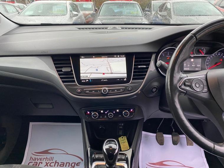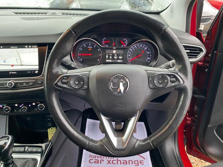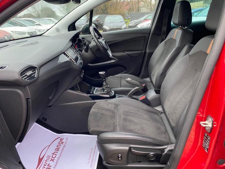 ONLY 45, 467 MILES+SATELLITE NAVIGATION SYSTEM+HEATED STEERING WHEEL+AUTOMATIC HEADLIGHTS+RAIN SENSING WIPERS+FRONT & REAR PARKING SENSORS WITH PANORAMIC REAR-VIEW CAMERA+CLIMATE CONTROL AIR-CONDITIONING+METALLIC HOT RED PAINT+17 INCH ALLOY WHEELS. At Haverhill Car Xchange we would like to offer you our low mileage Vauxhall Crossland Ultimate Nav SUV which has been finished in a metallic Hot Red Paint with Jet Black Alcantara Suede Upholstery. Excellent Specification includes an 8 inch Touchscreen Multimedia Infotainment System with Navi Pro Satellite Navigation System, Vauxhall Connect, Front USB Connection, X2 12 Volt Power Sockets in Front and Rear, Lane Departure Warning, Speed Sign Recognition, Cruise Control with Speed Limiter, Shift Up Indication Light, Dual Zone Climate Control Air-Conditioning, Electrically Operated Front and Rear Windows with Safety Autoreverse and One-Touch Up/Down Facility, Body Coloured Front and Rear Bumpers/Door Handles, Integrated Tailgate Spoiler, Black Door Mirrors, Automatic Headlight Control, LED Daytime Running Lights, LED Side Repeat Indicators, LED Front Fog Lights, Rear Fog Lights, Reversing Lights, Front and Rear Parking Assistance with Panoramic Rear-View Camera, Automatically Dimming Anti-Dazzle Rear-View Mirror, Rain-Sensitive Windscreen Wipers, Heated Leather Covered Three-Spoke Multifunction Steering Wheel, Ambient Lighting, 17 Inch Alloy Wheels, Silver Effect Roof Rails, Tinted Windows, Heated Rear Windscreen, Hill Start Assist, Speed Sensitive Power Assisted Steering, Airbags, Keyless Entry and Keyless Start, Remote Control Central Locking and ISOFIX Anchorage Points For Child Seats.