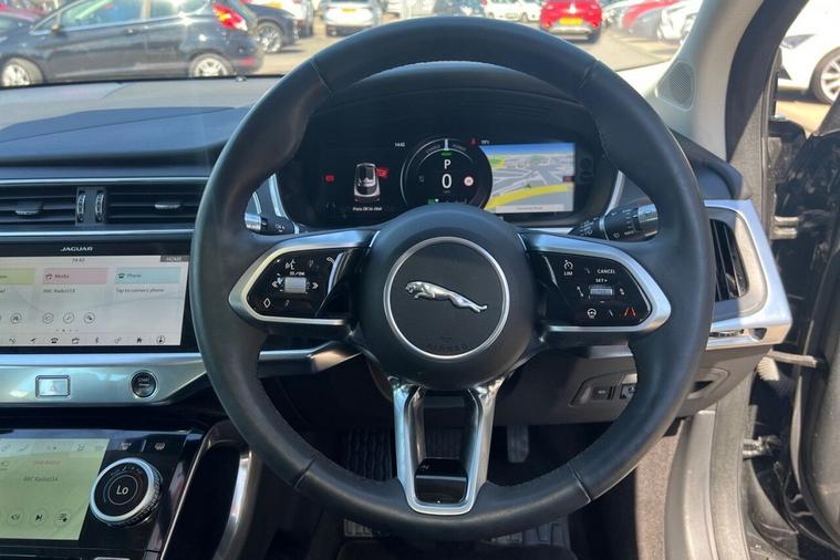 With only 16096 miles on the clock, this 2020 Jaguar I-PACE 400 SE is a rare find. This all-electric, four-wheel drive vehicle combines luxury with performance. The SE trim includes a heated steering wheel for those chilly mornings, keyless entry for added convenience, and 12-way heated electric front seats with memory function, ensuring optimal comfort. Stay connected with Android Auto and drive with confidence thanks to the blind spot assist feature. The vehicles road worthiness is confirmed with an MOT valid until December 2025, and a vehicle history check provides additional peace of mind. The I-PACE boasts a large boot space, making it more practical than other similar vehicles in its class. The battery has a maximum range of 284 miles when new, so you can enjoy longer journeys with fewer stops. Charging is convenient, with a full charge achievable in 12 hours 36 minutes using a 7kW home charger, or a rapid 50-minute charge from empty to 80% at a public charging point. The impressive acceleration, reaching 0-60mph in just 4.5 seconds, sets it apart from other vehicles, offering a thrilling driving experience.