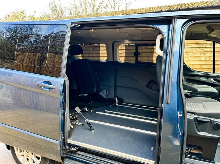 This GM Coachworks converted Ford Transit Custom Wheelchair Accessible Vehicle (WAV) has 3 Seats (2 Front and 1 Rear). Equipment includes Power Wheelchair Ramp and Tailgate, Removable Front Seat to allow Drive From Access, Air Conditioning, Electric Front Windows, Electric Adjustable Wing Mirrors, Power Steering, Remote Central Locking, Tinted Rear Windows.