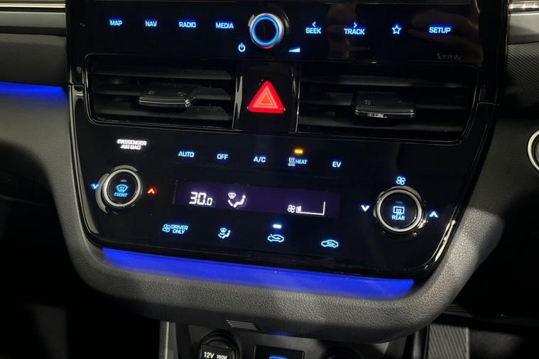 This easy to live with Ioniq comes with a Intense Blue exterior. Parking system on this vehicle include a Rear Camera and Rear Parking Sensors to help make those tight gaps a lot more easier to squeeze into. Within the cabin of this Ioniq, you will find a Dark Grey Leather interior, paired with Two Zone Climate Control, Cruise Control, Bluetooth Connectivity, Electric Windows, 10.25-Inch Touchscreen Media and Heated Front Seats.