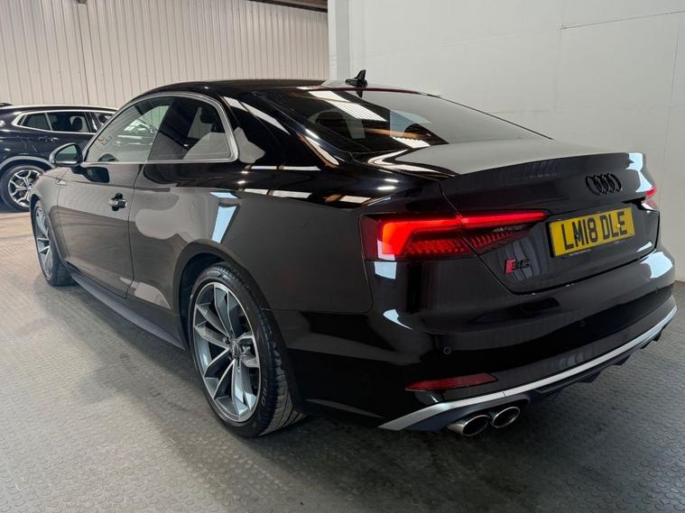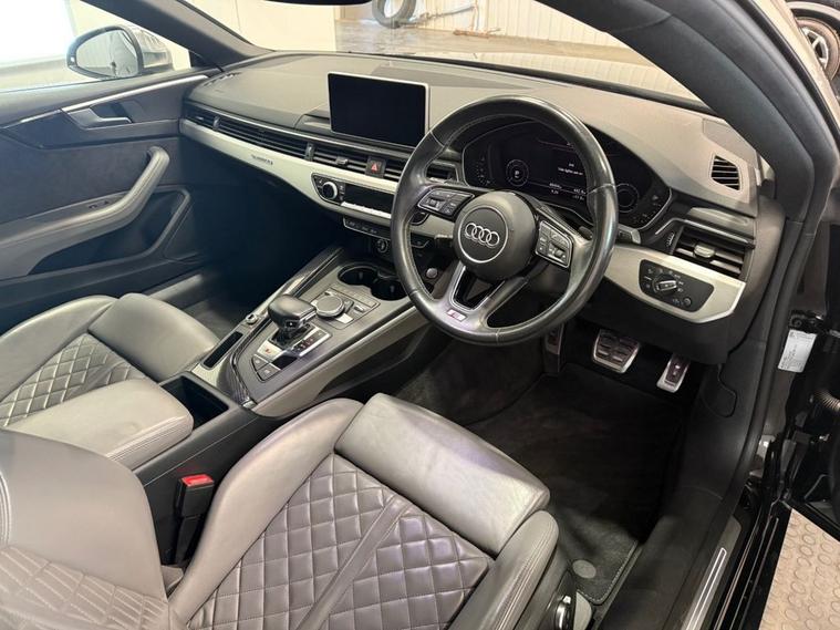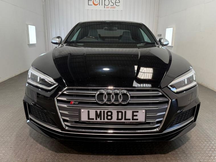 **THIS VEHICLE MAY BE AT OUR 150-CAR STORAGE FACILITY. PLEASE CALL AHEAD TO ARRANGE VIEWING AT OUR WINCHESTER SALES SITE** Service history, it has had a PDI at Audi and then inspection and oil services with Audi at 8k, 11k, 20k and 28k miles then independent services at 46k miles Finished in Brilliant Black, this 2018 Audi S5 3.0 TFSI V6 Coupe comes with 19-inch alloy wheels, S styling, Fine Nappa leather S Super Sport seats, Audi Virtual Cockpit, MMI Navigation Plus with Apple CarPlay and Android Auto, cruise control, front and rear parking sensors. Powered by a 3.0-litre turbocharged V6 engine with an 8-speed Tiptronic automatic gearbox and quattro all-wheel drive.