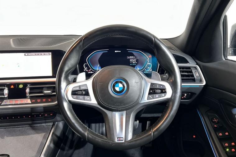 With only one previous owner, this 2021 BMW 3 Series 330e M Sport Pro Edition is a great choice. This vehicle combines a 2.0L Petrol Plug-in Hybrid engine with the M Sport Pro Edition trim. It meets Euro 6 emission standards and has a valid MOT until December 2025, with a clear vehicle history check for added peace of mind. The car is equipped with the Technology Package, including a Head Up Display, and the BMW Live Cockpit Professional, which features Bluetooth connectivity. Enjoy a comfortable environment with automatic three-zone air conditioning and climate control. The BMW 330e M Sport Pro Edition comes with Parking Assistant, including front and rear sensors and a rear camera, making parking easier than similar vehicles. The PDC - Park Distance Control - Front and Rear, further enhances parking convenience. The car can accelerate from 0-60mph in just 5.8 seconds, demonstrating its superior performance compared to other similar vehicles.