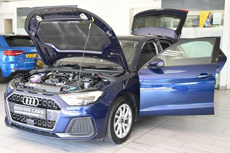 DRIVE AWAY TODAY OR HOME DELIVERY ANYWHERE IN MAINLAND UK FINANCE & PART EXCHANGE ARRANGED ONLINE **7 DAY MONEY BACK GUARANTEE** Audi A1 tfsi sportback s-tronic in metallic blue under Audi Warranty until July 2027 touchscreen sound system dab radio bluetooth media phone apps usb cloth seats with leather armrest electric heated folding door mirrors rear parking aid sensors xenon lights air conditioning alloys