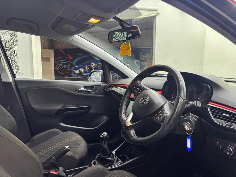 Unleash sporty flair and vibrant efficiency with this 2019 Vauxhall Corsa 1.4i SRi VX Line Nav Black Hatchback in striking Lava Red. Powered by a nimble 90 ps 1.4-litre petrol engine, this Euro 6-compliant manual delivers agile performance and excellent fuel economy, achieving up to 49.6mpg (WLTP combined), ideal for city commutes or weekend drives. With only 32, 000 miles, service history, and 2 keys, this 5-door hatchback ensures low-mileage reliability and bold appeal. Navigate effortlessly with the integrated satellite navigation system, featuring a touchscreen display for precise, reliable directions, saving time and reducing stress in urban traffic or on unfamiliar routes. Cruise control maintains steady speeds for relaxed, efficient long drives, reducing driver fatigue. Air conditioning keeps the cabin cool and comfortable, perfect for warm days or daily drives. The SRi VX Line Nav Black trim combines a sporty interior with dynamic styling, featuring sleek alloy wheels and VX Line accents that enhance the Corsa's athletic design, improving handling and turning heads. With 410 litres of boot space, it's ideal for young drivers, small families, or those seeking a blend of style and practicality. With high-spec features like satellite navigation, cruise control, and a fiery Lava Red finish, this Vauxhall Corsa delivers exceptional value. Contact us today to arrange a viewing and experience its electrifying charm firsthand!