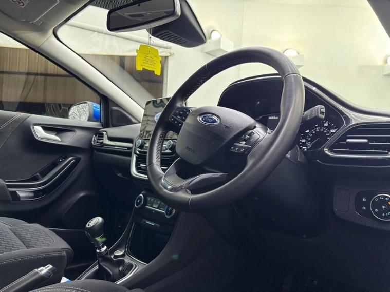 Unleash vibrant style and dynamic efficiency with this 2021 Ford Puma 1.0T EcoBoost MHEV Titanium SUV in striking blue. Powered by a lively 125 ps 1.0-litre EcoBoost petrol engine with mild-hybrid technology, this Euro 6-compliant manual delivers spirited performance and excellent fuel economy, achieving up to 52.3mpg (WLTP combined), ideal for city commutes or weekend adventures. With only 18, 000 miles, full service history at 2-year or 18, 000-mile intervals, this 5-door SUV ensures ultra-low-mileage reliability and modern appeal. Navigate effortlessly with the Ford SYNC 3 Navigation HDD system, featuring an 8-inch touchscreen for precise, reliable directions, saving time and reducing stress in urban traffic or on unfamiliar routes. Rear parking sensors make manoeuvring in tight spaces seamless, enhancing safety in busy car parks or narrow streets. Electronic air temperature control (EATC) maintains a comfortable cabin for all passengers, ensuring a pleasant environment year-round, perfect for daily drives or longer journeys. Sleek 17 10-spoke alloy wheels in Absolute Black machined finish enhance the Puma's bold, athletic design, improving handling and turning heads. The Titanium trim combines a tech-savvy cockpit with versatile practicality, offering 456 litres of boot space (expandable to 1, 216 litres) with a Ford MegaBox for additional storage, ideal for small families, professionals, or those seeking a blend of style and functionality. Additional features include cruise control, lane-keeping aid, and selectable drive modes (Normal, Eco, Sport, Slippery, Trail) for tailored performance. With its ultra-low mileage, high-spec features like SYNC 3 navigation, and a vibrant blue finish, this Ford Puma delivers exceptional value. Contact us today to arrange a viewing and experience its electrifying charm firsthand! Please note: Owner details and number of keys were not provided, so they are not included in the advert. If you have these details or other specifics, let me know, and I can update the listing!
