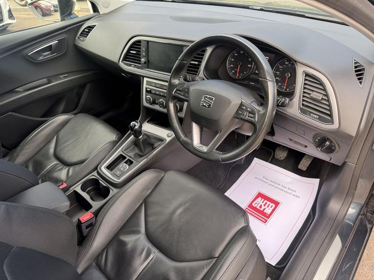 Seat Leon Evo Xcellence ST in metallic grey with full service history. Comes with sat navigation, 17 alloy wheels, air conditioning, electric windows in the front and rear, electric folding heated mirrors, keyless start, front and rear parking sensors, reversing camera, cruise control, full leather trim with heated seats, auto lights, rear privacy glass, stop/start engine, park assist, its a 6 speed, has bluetooth, voice command, apple car play, a touchscreen dab radio, aux port, usb, a multifunction steering wheel and 2 remote keys. THE CAR WILL HAVE A SERVICE AND 12 MONTHS MOT / PART EXCHANGE IS ALWAYS WELCOME / FREE 12 MONTH AA ROADSIDE RECOVERY INCLUDED / FINANCE IS AVAILABLE VIA OUR WEBSITE LINK / THE CAR HAS BEEN HPI AND MILEAGE CHECKED, ALL OK / WE ARE A FAMILY RUN BUSINESS AND HAVE BEEN TRADING FOR OVER 30 YEARS, WE OFFER DELIVERY IN MAINLAND UK (Please ask for details), WE ARE HERE TO HELP YOU! PLEASE CONTACT US WITH ANY QUESTIONS.