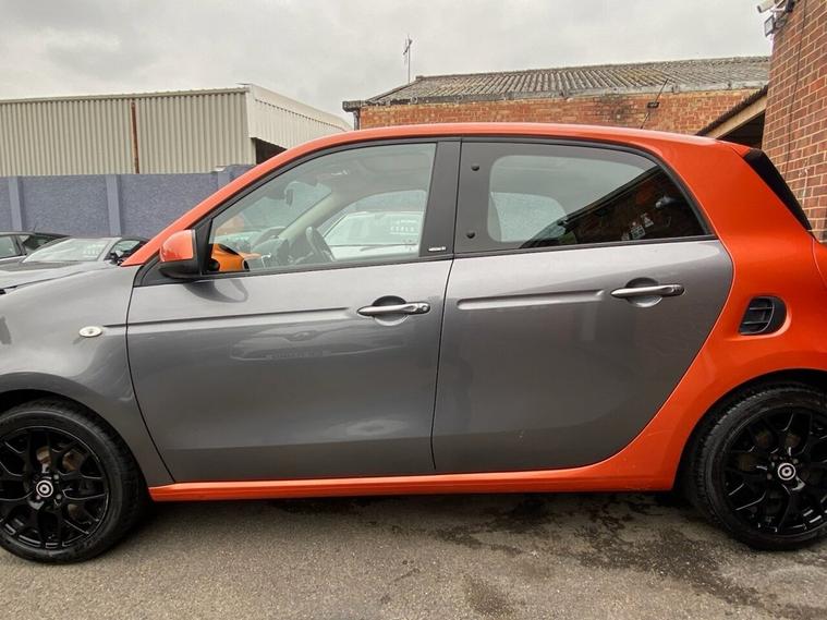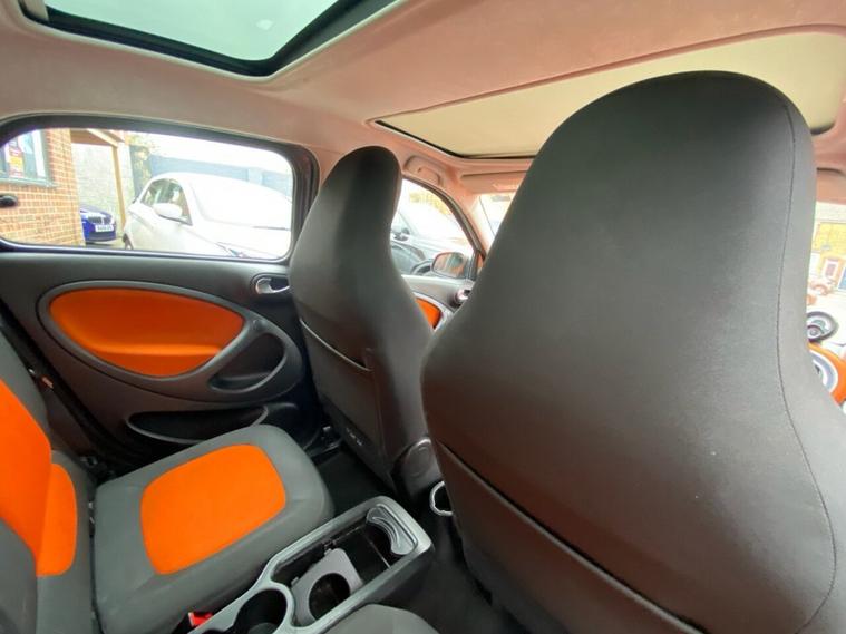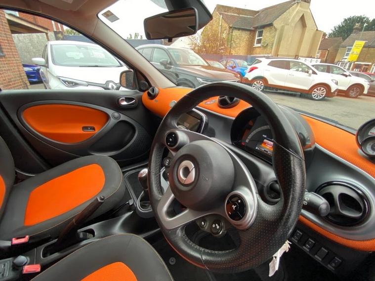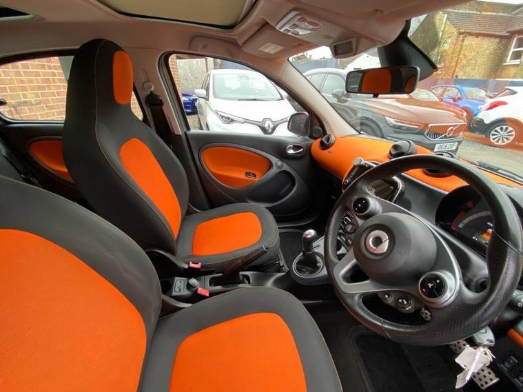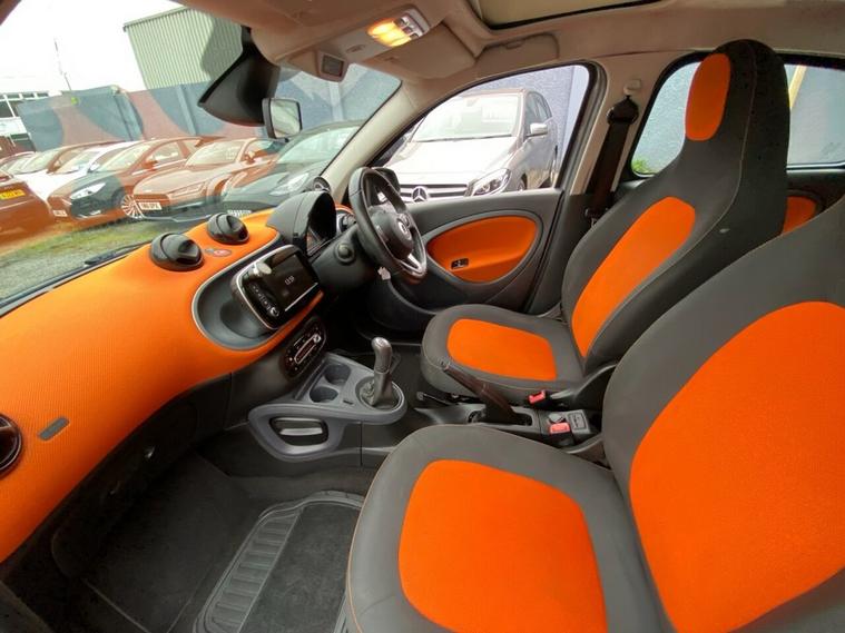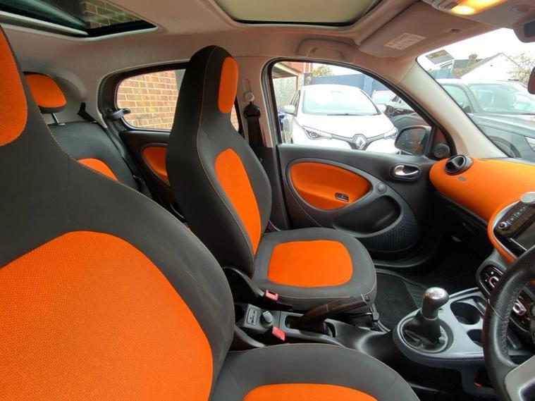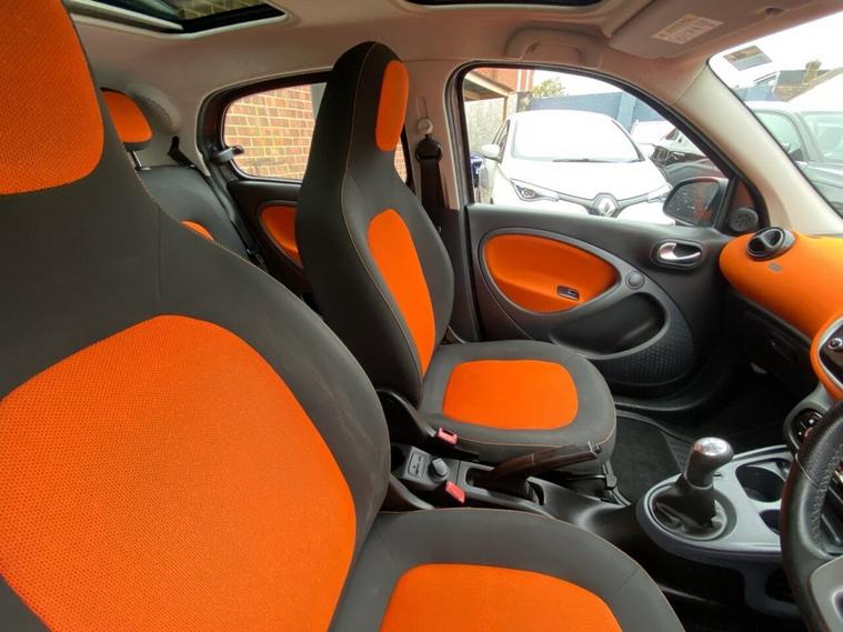 This 2015 Smart forfour Edition 1 boasts a full service history, ensuring its excellent provenance, and comes with an MOT valid until May 2026. This stylish city car features a 1.0L Euro 6 petrol engine, offering an impressive fuel economy of 67 mpg. Inside, youll find a panoramic roof with sun protection, automatic climate control, and automatic headlights for added comfort and convenience. Parking is made easier with rear parking sensors and a rear view camera. The Smart forfour Edition 1 stands out with its low insurance group and low CO2 emissions, indicating it is more economical to own and run compared to many other vehicles. These highlights, combined with its comprehensive service history and long MOT, make this a sensible and appealing choice for those seeking a practical and efficient urban vehicle.