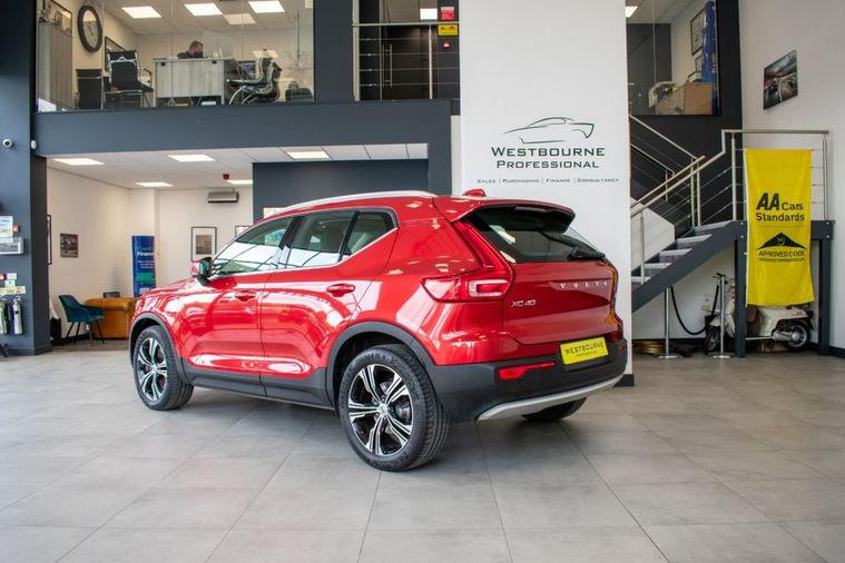 2021 '21' Volvo XC40 1.5h T5 Twin Engine Recharge Inscription, finished in Fusion Red with Charcoal Leather interior. Fantastic specification including Climate Pack, Heated Front & Rear Seats, Heated Steering Wheel, Heated Windscreen, Apple CarPlay / Android Auto, Satellite Navigation, Electrically Adjustable Drivers Seat with Memory Function, Power Tailgate, Front & Rear Parking Sensors, Rear View Camera, Automatic LED Headlights, High Beam Assist, DAB Radio, Bluetooth Telephone & Audio Connectivity, Automatic Dual Zone Climate Control, Power Folding Mirrors, Lane Assist, Drive Modes, Keyless Start, Digital Dashboard, 19-inch Alloy Wheels, ISOFIX, Tyre Pressure Monitoring System and much more. A one owner example supplied with full Volvo service history carried out on 09/06/2022 at 16761 miles, 26/07/2023 at 34568 miles and 13/08/2024 at 50021 miles, along with a service by our workshop prior to sale.