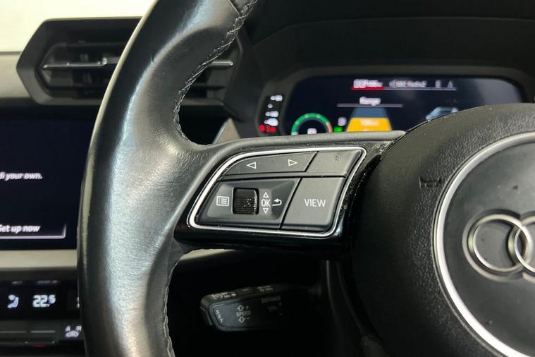 With only one previous owner, this 2024 Audi A3 TFSIe Sport is a great choice. This Sport trim A3 features a 1.4L Petrol Plug-in Hybrid engine and meets Euro 6 emission standards. The car's history has been checked and is clear. It comes equipped with rear parking sensors, including parking assistance via a rear sensor, and a light and rain sensor that automatically turns on the headlights. The LED headlights, complete with LED daytime running lights and halogen rear lights, provide excellent visibility. The Audi Smartphone Interface, which includes Apple CarPlay, ensures seamless connectivity. The dual-zone electronic climate control system allows for tailored comfort. These features show how well-equipped this particular A3 is compared to similar vehicles.