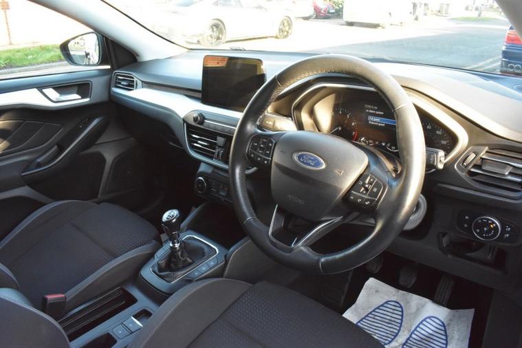 This 2019 Ford Focus Zetec offers excellent peace of mind with its MOT valid until November 2026. This T Zetec model is equipped with a 1.0L petrol engine and meets Euro 6 emission standards. Inside, youll find manual air conditioning for your comfort, and automatic on-off headlights for convenience. The Ford SYNC system, featuring an 8in TFT touchscreen, seamlessly integrates with Android Auto and Apple CarPlay, keeping you connected on the go. Experience impressive performance with a 0-60mph acceleration time of just 10.0 seconds, demonstrating its responsiveness. This Focus also boasts low CO2 emissions, making it an environmentally conscious choice. Furthermore, the generous boot space ensures you have ample room for luggage, shopping, or any gear you need to carry, making this Ford Focus a practical and enjoyable vehicle for everyday use. Finished in Shadow Black. 1 previous owner. Comes with documented service history including a fresh service inspection from our in house technicians with a minimum of 6 months MOT. Only 72, 800 miles covered. The vehicle is in great condition for its age and mileage. It comes with a collection of extras including climate control, touch screen entertainment and privacy glass. The vehicle has undergone an extensive PDI check along with a 50 mile road test and performs as expected.