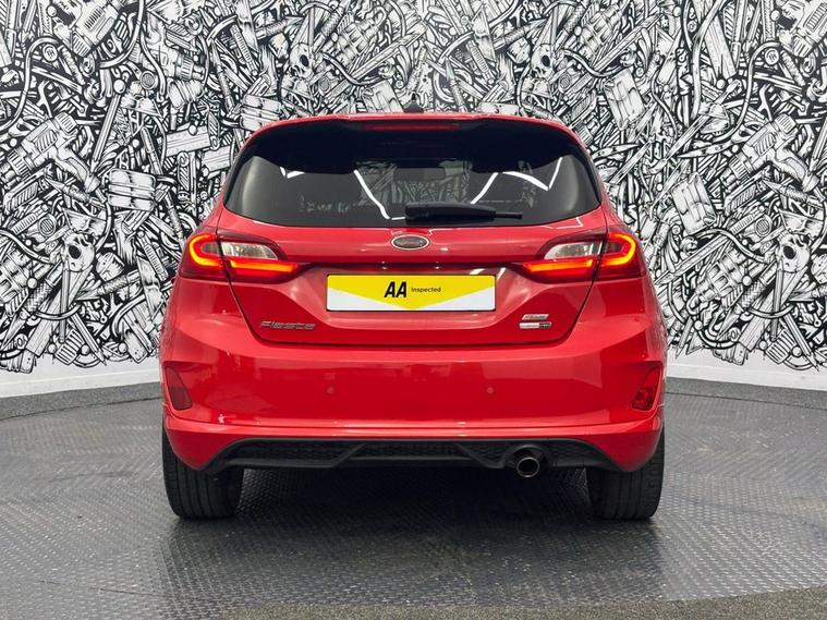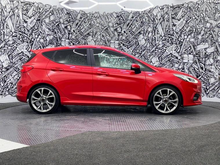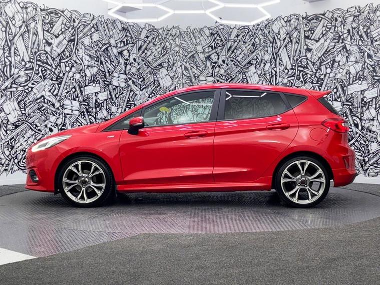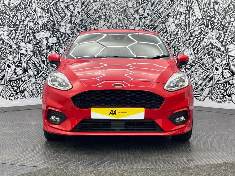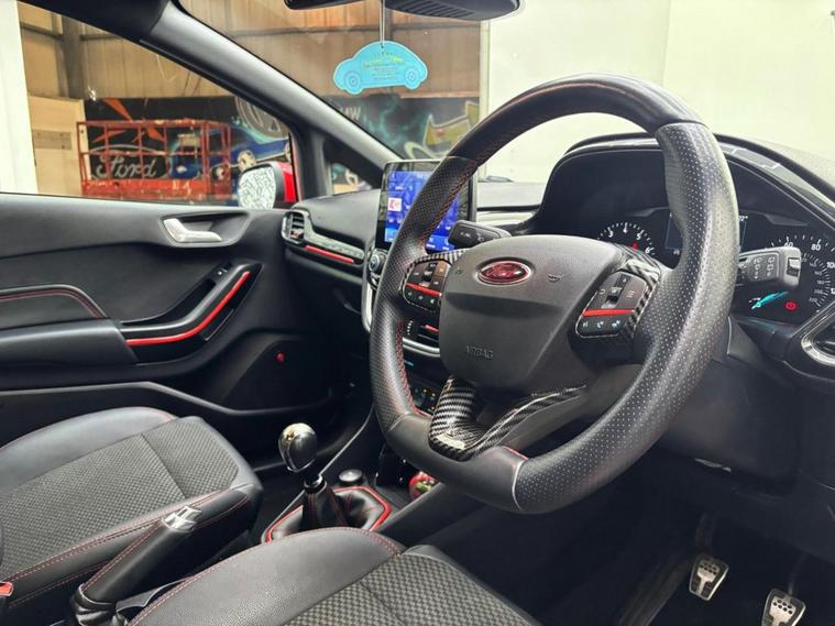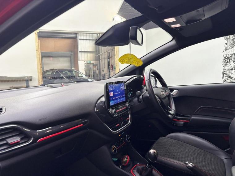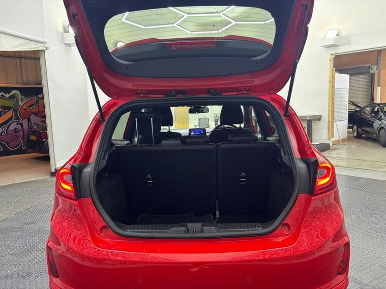 Unleash Sporty Efficiency with this 2021 Ford Fiesta 1.0T EcoBoost MHEV ST-Line X Edition Hatchback Experience vibrant performance and bold style with this 2021 (70 plate) Ford Fiesta 1.0T EcoBoost MHEV ST-Line X Edition Hatchback in striking Race Red. Powered by a lively 125 ps 1.0-litre EcoBoost mild-hybrid petrol engine, this Euro 6-compliant 6-speed manual delivers agile handling, reaching 0-62mph in 10.0 seconds, and excellent fuel economy of up to 55.4mpg (WLTP combined) with CO2 emissions of 115g/km, ideal for city commutes or spirited drives. With 31, 000 miles and two keys, this 5-door hatchback ensures low-mileage reliability and modern appeal, perfect for young drivers or small families seeking a blend of sportiness and practicality. Navigate seamlessly with the Navigation HDD system, featuring an 8-inch touchscreen for precise directions, saving time in urban traffic or on unfamiliar routes. Front and rear parking sensors make manoeuvring in tight spaces effortless, enhancing safety in busy car parks or narrow streets. Dual-zone climate control maintains a comfortable cabin, ensuring a pleasant environment year-round, while the half-leather trim interior elevates the ST-Line Xs sporty aesthetic with premium, supportive seats. Sleek 18-inch alloy wheels enhance the Fiestas dynamic design, improving handling and turning heads, while privacy glass adds a discreet, stylish touch, shielding passengers and cargo. The ST-Line X Edition offers a practical interior with a 292-litre boot, expandable to 1, 093 litres with 60:40 split rear seats, ideal for shopping or small luggage. With high-spec features like navigation, parking sensors, climate control, half-leather trim, 18-inch alloy wheels, and privacy glass, this Ford Fiesta delivers exceptional value. Contact us today to arrange a viewing and experience its electrifying charm firsthand!