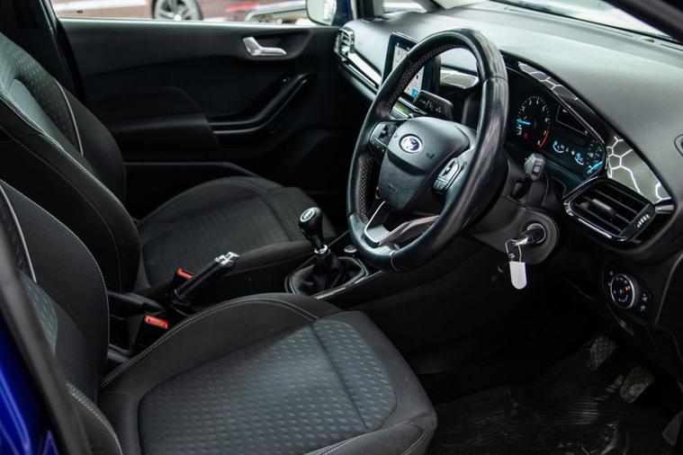 *DRIVER SIDE BUMPER REPLACED* *CRUISE CONTROL* Enjoy fun, efficiency, and practicality in this 2018 Ford Fiesta 1.0T EcoBoost Zetec a stylish and economical hatchback thats perfect for city driving and beyond. Powered by Fords award-winning 1.0-litre turbocharged EcoBoost petrol engine producing 100 PS, this Euro 6 (s/s) compliant model offers lively performance with excellent fuel economy and low running costs. The Zetec trim adds a sporty touch with alloy wheels, chrome exterior details, and a well-equipped interior. Inside, youll find a crisp infotainment system with Bluetooth connectivity, DAB radio, and USB input, as well as air conditioning, a leather-wrapped steering wheel, and Fords SYNC infotainment system for easy control of your music and calls. With its 5-door layout, the Fiesta offers easy access for passengers and a practical boot making it ideal for both young drivers and small families. Its light steering, compact size, and responsive handling make it a joy to drive in urban environments, while still feeling composed on the motorway. This example comes with a majority main dealer service history, 2 keys, and a clean MOT with no advisories, showing its been well maintained and cared for. Finance available | Up to 3 years warranty | Nationwide delivery | Part exchange welcome