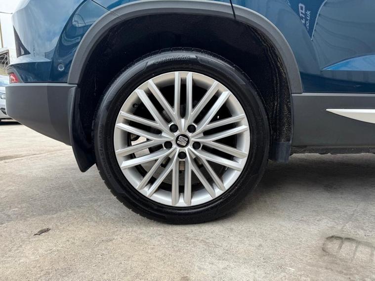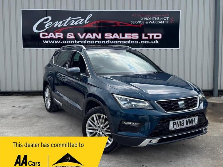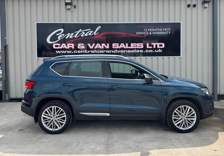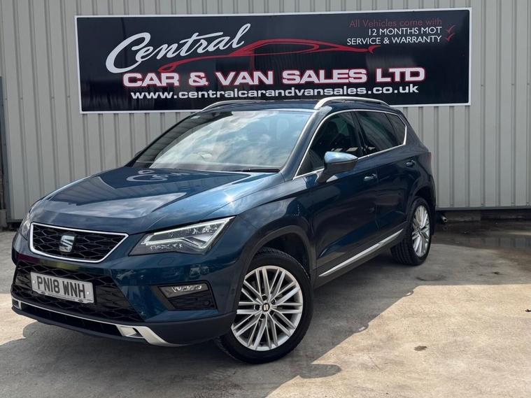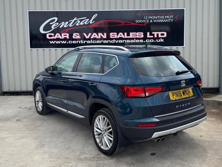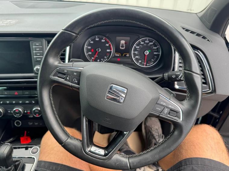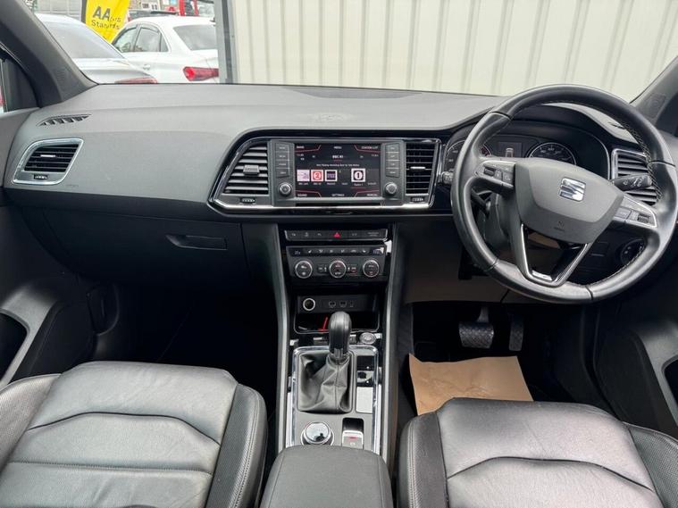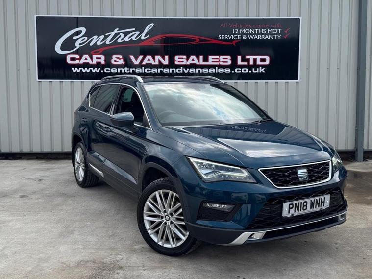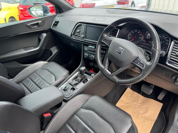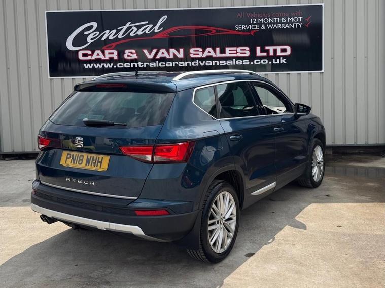 March 2018 Seat Ateca 1.4 TSI Xcellance ECO DSG 7 Speed Automatic with paddle shift. The car has done just 42, 100 miles from new with full service history, 2 previous owners. The car qualifies for ULEZ compliant as it is in the Euro 6 emissions class Road tax comes in at just £195 for 12 months and the car willo be sold with 12 months MOT from the day of purchase. The car also comes with a extendable warranty. The Ateca returns 44mpg urban, 58mpg extra urban and 51mpg combined. Insurance group 17E. The car has a huge specification that includes power steering, remote central locking, keyless entry, keyless go, x4 electric windows with rear window locks, electric door mirrors, power fold mirrors, automatic 7G tronic DSG transmission with tiptronic & paddles, cruise control, electronic parking brake with power auto hold, drive modes, start/stop, heated & cooled seats, full black leather upholstery, USB X2 IPOD connect, 12V plug, air conditioning, park pilot, electronic tailgatewith virtual pedal, wireless phone charger, auto lights, leather centre armrest, touch screen LCD touch screen media interface, satellite navigation, applications, Apple car play, android conect, mirror link, voice activation command, black headlining, piano black trims, ISOFIX, adjustable steering colum, 18 alloy wheels, DRL'S, multiple airbags too much to list!