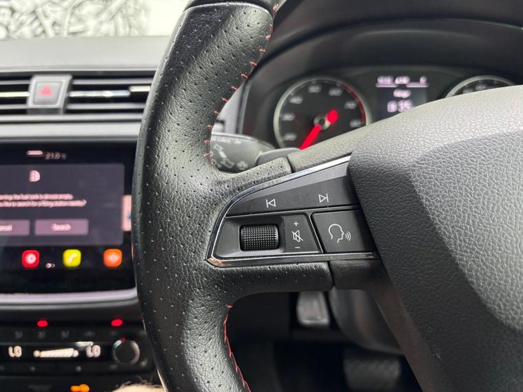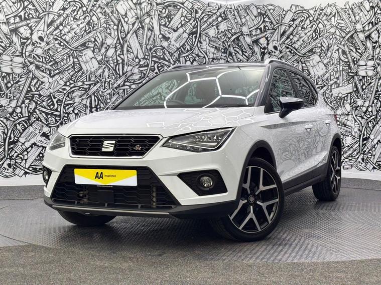 With only 16138 miles on the clock, this 2021 SEAT Arona is offered in the sporty TSI FR Red Edition trim. The Arona is equipped with a 1.0L petrol engine and conforms to the Euro 6 emission class. The FR Red Edition includes Full Link Smartphone Integration, compatible with both Android Auto and Apple CarPlay, ensuring seamless connectivity on the move. Dual Zone Climate Control maintains a comfortable environment for both driver and passengers, while the Connectivity Pack Plus adds the convenience of Wireless Phone Charging. Manoeuvring is made easier with Rear Parking Sensors. The integrated Bluetooth Audio Streaming with Handsfree System allows for safe and convenient communication and entertainment. This SEAT Arona stands out with its fuel economy of 47 mpg, meaning fewer trips to the petrol station. The cars low CO2 emissions mean reduced road tax, making it an economical choice for environmentally conscious drivers.