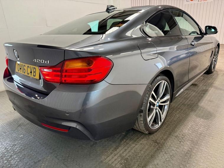 **THIS CAR MAY BE AT OUR 150 CAR STORAGE FACILITY. PLEASE CALL AHEAD BEFORE YOU VISIT TO ARRANGE VIEWING AT OUR WINCHESTER SALES SITE** Serviced at 24k, 25k, 30k, 34k, 45k miles Mineral grey BMW 420 X drive coupe with full black Dakota leather interior, MOT March 2026 and 2 keys. Pro Nav, front and rear parking sensors, M sport plus package and M sport braking system, Harmon Kardon sound system, dual zone climate control, heated seats, enhanced Bluetooth and BAD radio. £165 tax, Euro 6 and ULEZ compliant.