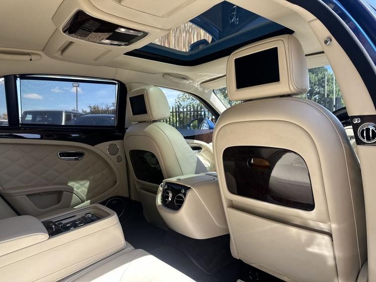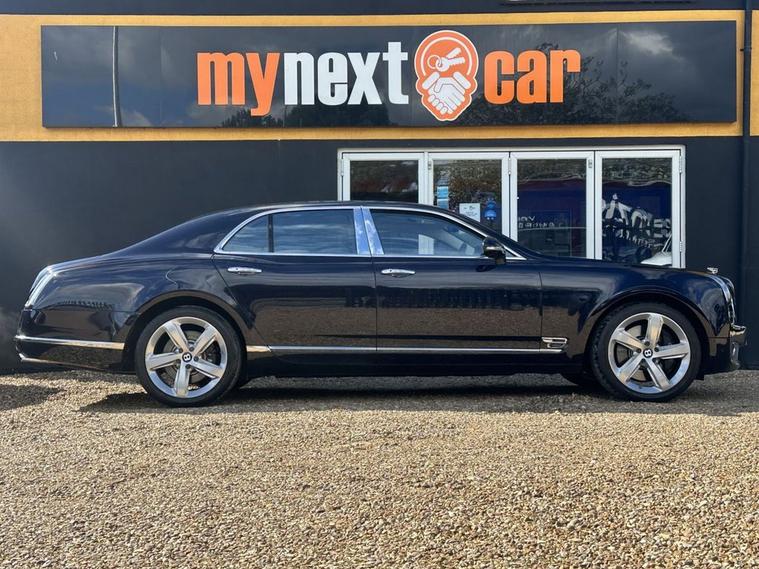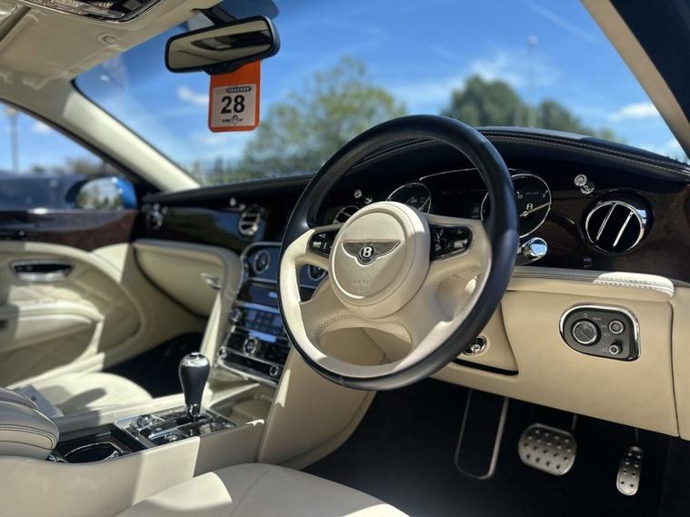 Cost option Extras Black Sapphire, 21 Alloy Wheels Mulsanne Light, 3 point Seat Belts to Front Seats with Electric Height Adjustment and Memory Function, 3 point Seat Belts to Outer and Centre Rear Seats with Pyrotechnic Pre-Tensioners, 6 CD Changer Fitted in Glovebox, 60 GB Hard Disc Drive Unit Fitted in Glovebox, 8in High-Resolution Colour Screen to Display Infotainment and Vehicle Systems Information, Acoustic Glazing with Infra Red Reflectivity Interlayer, Additional Rear Cabin A-C Unit with Front and Rear Controls for Fan Speed and Temperature, Airbag Front Passenger Deactivation, Aluminium Bonnet, Aluminium Closures, Aluminium Doors with Superformed Structure and E-truded Aluminuim Side Impact Beams, Automatic Ride Height Control Sensitive to Speed and Load, Battery Conditioner with Magnetic Trickle Charging Point Concealed in Rear Registration Plate Recess, Bentley GPS Tracking System Provision. Black Matri- Grille to Lower Bumper Apertures, Bright Finish Interior Fittings in Polished Stainless Steel, Concealed Passenger Map Light, Cradle Mounted in Front Armrest with SIM Card Reader in Hard Drive Unit, Cruise Control, DAB Radio, Daytime Running Light Signature, Direct Tyre Pressure Monitoring System with Provision for Speed Related Warning, Door Mirrors Electronically Adjustable with Heating Power Folding and Two Memory Functions, Double Wishbone Front Suspension, Drive Dynamics Control Four Driver Selectable Settings for CDC and Power Steering, Driver Configurable Choice of Navigation Prompts Compass Infotainment Vehicle or Trip Information, Drivers Instrument Panel Inverted Aviation Style Dials for Vehicle and Engine Speed, EBD Electronic Brake Force Distribution, ESC Electronic Stability Control, Electrical Height Adjustment for Front Seatbelts with Two Memory Positions, Electrically Operated Privacy Blinds for Rear Windows and Rear Screen Controlled from Front or Rear, Electrochromatic Auto Dimming Rear View Mirror with On Off Button, Electronic Parking Brake with Drive Away Assist, Electronically Controlled Air Springs with Continuous Damping Control CDC, Folding Rear Centre Armrest Console Controls for Seating and Air Conditioning, Four Zone Air Conditioning, Front Parking Sensors, Front Passenger Seat Full Adjustment from Rear Cabin Controls Housed in Rear Centre Armrest, Front Seat Belts with Pyrotechnic Pre-tensioners and Force Limiters, Front Seats Easy Entry Function, Front Seats Two Memory Positions and Easy Entry-E-it Function, Front Wing Vents with Black Matri- Grille, Full iPod and MP3 Player Compatibility Including Full Colour Album Art Display and Video Playback, Hand Selected Leather to All Trimmed Interior Surfaces inc Fascia Headlining Door Panels,