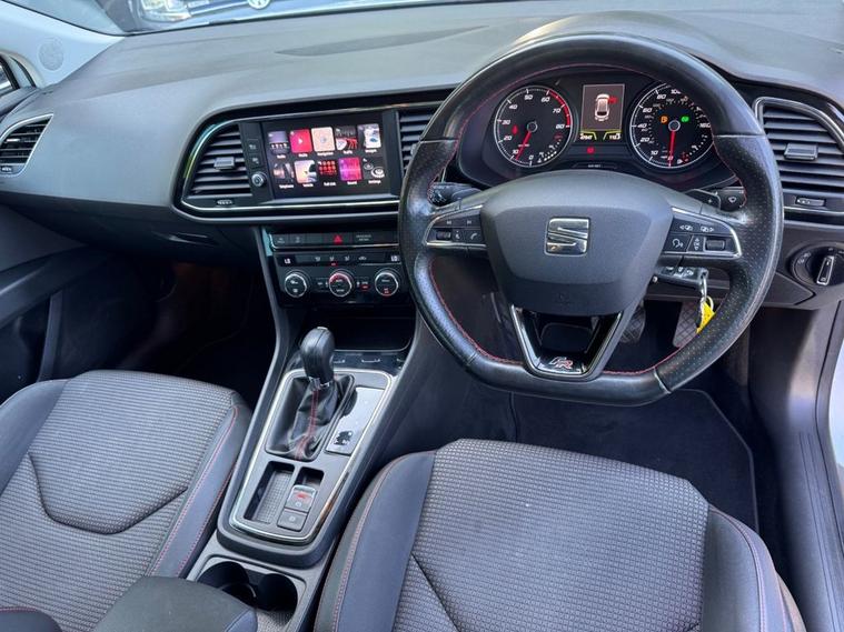 Stunning Condition Seat Leon 1.4 TSI Petrol AUTO FR in Nevada White paintwork sitting in 18 performance alloys. Only 2 owners from new with comprehensive service history. Excellent Spec includes half black leather interior with heated front seats, Front/Rear parking sensors, power folding wing mirrors, sat nav, apple car play / Android Auto, DAB radio, Auto headlights, Multi-function steering with cruise control, climate control with A/C, Bluetooth, USB input, digital dashboard, Trip computer and much more. Call 01138032773 or visit dealer's website