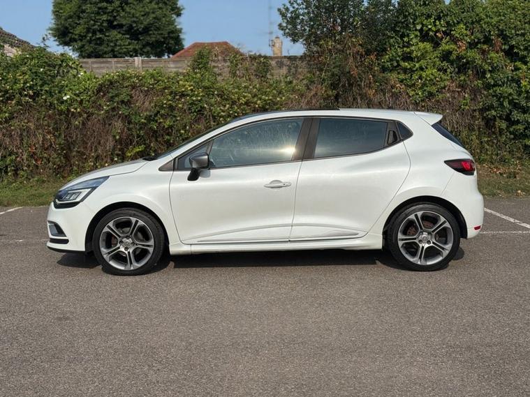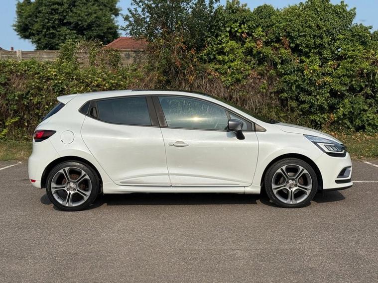 Here for sale at Leigh Cars Ltd we are delighted to present a superb example of the ever popular Renault Clio 0.9 TCe GT LINE PETROL 5dr 90bhp hatchback finished in upgraded arctic white pearlescent metallic paint, with contrasting freshly refurbished 17 GT alloys finished in gun metal grey and the rare factory upgraded fixed panoramic glass roof, making this superb example really stand out amongst the crowd! This flawless example comes with a superb full service history - 8 stamps, last completed in July 2025 as part of our thorough pre sale used car safety preparations. For added security and peace of mind we have also completed a brand new MOT that runs until July 2026. Not to mention the upgraded paintwork and the rare panoramic glass roof, this model level comes with some cracking standard specification including half black leather interior, satellite navigation, rear parking sensors, climate controlled air conditioning, bluetooth handsfree mobile preparation + USB & AUX, DAB radio, voice command, cruise control, auto lights + wipers, electric windows, electric power folding mirrors, keyless entry + handsfree power button start, central locking, 17 GT alloy wheels, 2 keys + much much more. This superb looking 5dr hatchback is £195 road tax per year with astonishing fuel economy figures of 47.1mpg on average and is also ULEZ charge exempt. With this phenomenal specification and running costs, we do not anticipate that this Renault Clio to be with us for long! Book in your click & collect or nationwide delivery today to avoid disappointment. As we are an AA accredited dealer you will receive 12 months complimentary AA roadside assistance. AA warranty packages available up to 2 years and superb low rate zero deposit finance deals available today. Why not give us a call or visit our website finance calculator to see how affordable your new car could be. We are rated 5 stars by our customer reviews on Autotrader, Trustpilot, Facebook, Google and Car Gurus so you can be assured you are dealing with a company that truly cares about the customer. We take great pride in providing a personal quality service like no other and guarantee to make your purchase a smooth and pleasant experience. Please read our customer reviews online to see what they have to say about the level of service they received from us when purchasing a car. We have recently been awarded with the accolade of Car Gurus Top Rated Dealer 2023 - thats 6 years running now - and Autotrader Highly Rated Dealer 2019, 2020, 2022 and 2023 - Buy Your Car From The Best In Essex. Click & collect + nationwide delivery available - 14 days money back guarantee subject to T&Cs. Enquire now for more information.