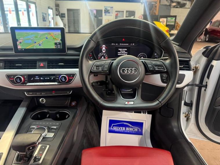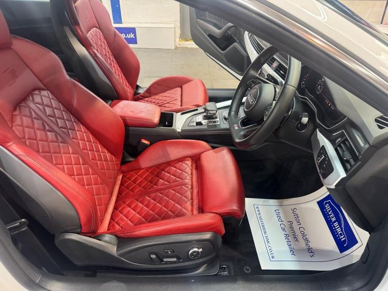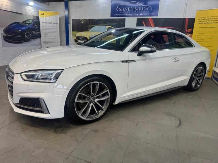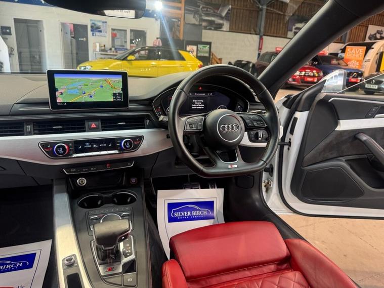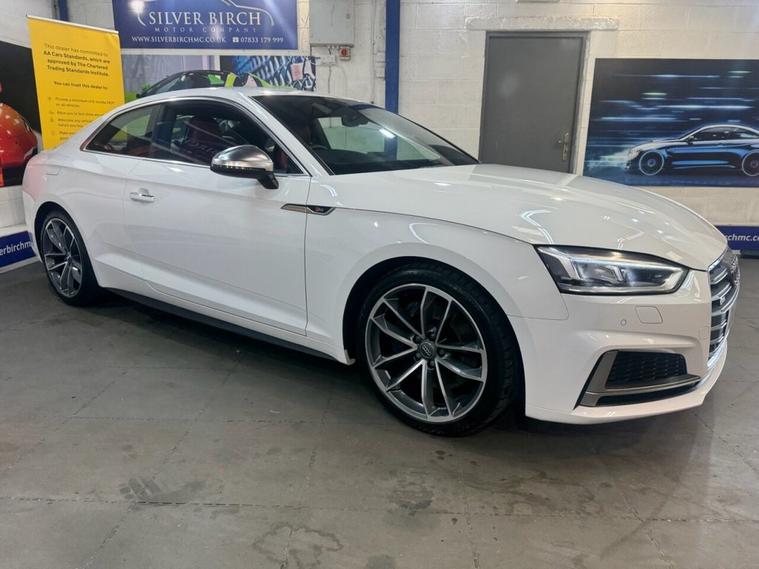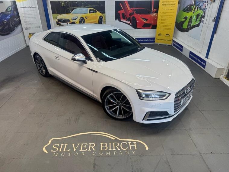 ++++++Please see our Video++VIEWING BY APPOINTMENT ONLY, --------CALL DARRIN ON 01215402051+++++3 months NATIONWIDE PARTS & LABOUR WARRANTY INCLUDED, ****(extendable up to 39 months)**** 12 months AA Breakdown Cover included-------, , SOURCE - Here at Silver Birch Motor Company, we have managed to secure this lovely immaculate S5 3.0 TFSI Auto couper directly from our local Audi Dealer where it was taken as a part exchange for a newer car. +++++++CONDITION - it has been well looked after from its 2 private owners from new. SERVICE HISTORY - its offered with a Service History, its most recent service was done on 18/07/2025, Finished in stunning Ibis White Paint with Magma Red leather interior, 19 Diamond Cut Alloys, Tech pack, Virtual Dash, heated front seats, Huge Spec ++++++ It boasts an extremely clean and tidy interior that has never been smoked in or abused in any way. MOT 18/07/2026 with no advisories , we have 2 keys,