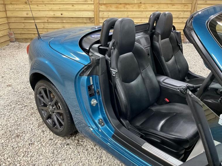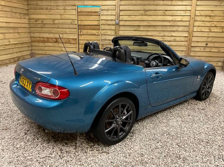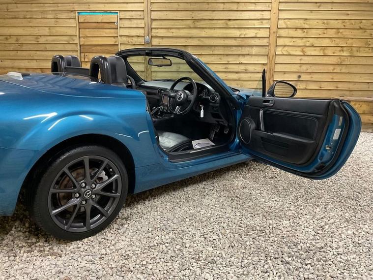 45, 868 MILES ONLY FSHDEMO + ONE LADY OWNER FROM NEWLIMITED EDITION NO 49 /500 MADEUNIQUE OPPORTUNITY NOT TO BE MISSEDTHIS RARE MX5 SPORT GRAPHITE MODEL IS FINISHED IN BEAUTIFUL MET BLUE WITH FULL GREY LEATHER UPHOLSTERYSPEC INCLUDES17 DARK GUN METAL ALLOYS. 6 SPEED. CRUISE. TRACTION. AIR / CON. MULTI FUNCTION STEERING WHEEL. MAZDA TOM TOM COLOUR TOUCH SCREEN DISPLAY. RADIO C/D, SAT NAV. HEATED SEATS. ELEC POWERED HARD TOP. OVER MATS. ETCEXCELLENT EXTERIOR & INTERIOR CONDITIONDOES DRIVE REALLY WELLMUST BE SEEN TO BE APPRECIATEDFULL DEALER FACILITIESFAMILY RUN BUSINESS