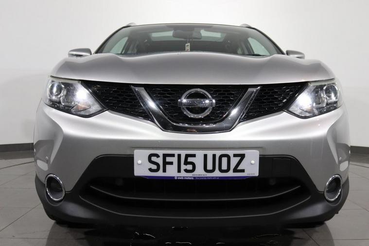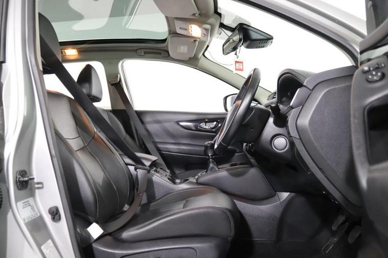 AWB Motors are pleased to present this stunning Nissan Qashqai finished in Blade Silver complemented by 19in ALLOY WHEELS, PANORAMIC GLASS ROOF and Front Fog Lights. Sit in luxury with FULL HEATED LEATHER Interior. At the heart of the dash is a TOUCHSCREEN Display showing functions such as SATNAV. Make your calls handsfree using the BLUETOOTH Interface. Charge your phone using the USB port. Perfect for listening to your favourite music either from your phone through the AUX port or simply using the DAB Radio. These alongside all other radio functions can be controlled using the Multifunction Steering Wheel. Park with ease thanks to 360 Degree PARKING CAMERA Fitted. Drive in comfort whatever the journey with both CRUISE CONTROL and CLIMATE CONTROL with AIR CONDITIONING. Safe for your children with ISOFIX Anchorage Points. Other useful ancillaries include Lane Assist, Auto Lights and Wipers, POWER FOLD Electric Mirrors, 4 Way Electric Windows and Remote Central Locking. Cheap to run being just £20 TAX and thanks to its Fuel Efficient Engine Engine achieving 70+MPG. Buy with confidence as it has had just 2 OWNERS From New. Maintained very well with 8 Stamp SERVICE HISTORY.