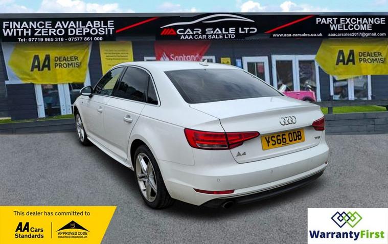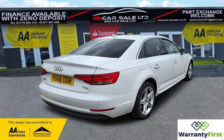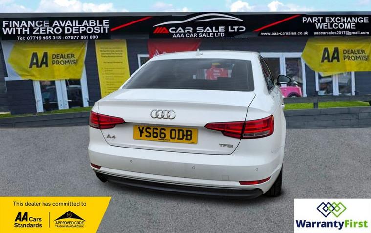 **AAA CAR SALES DARLINGTON LTD HAVE THE PLEASURE TO PRESENT THIS AUDI A4 1.4 TFSI Sport Saloon 4dr Petrol Manual Euro 6 (s/s) (150 ps) IN IBIS WHITE PAINTWORK, SERVICE HISTORY SERVICED AT 19k, 43k, 52k, 63k, 84k AND SERVICED BY OUR TEAM AT 90K* NEW GEARBOX, CLUTCH & FLYWHEEL FITTED DEC 2025 @ 90K, ALL OUR CARS GO THROUGH 72 POINT INSPECTION, ALL OF OUR CARS COME WITH 12 MONTHS AA BREAKDOWN COVER, UP TO 12 MONTH MOT WITHOUT ADVISORIES, INTERIM SERVICE, HPI CHECKED VIA EXPERIAN, 3 MONTHS WARRANTY WITH THE OPTION TO UPGRADE ***AUTOTRADER CUSTOMER SERVICE AWARD 2019, 2020, 2021, 2022 & 2023 YEAR ON YEAR***, WE ARE OPEN 7 DAYS A WEEK FOR YOUR CONVIENIENCE, CALL 01325950841 OR EMAIL US AT hello dealer's website or visit our website dealer's website YOU CAN BUY WITH FULL CONFIDENCE FROM AAA CARS CHECK OUR AUTOTRADER REVIEWS FOR FULL PEACE OF MIND,