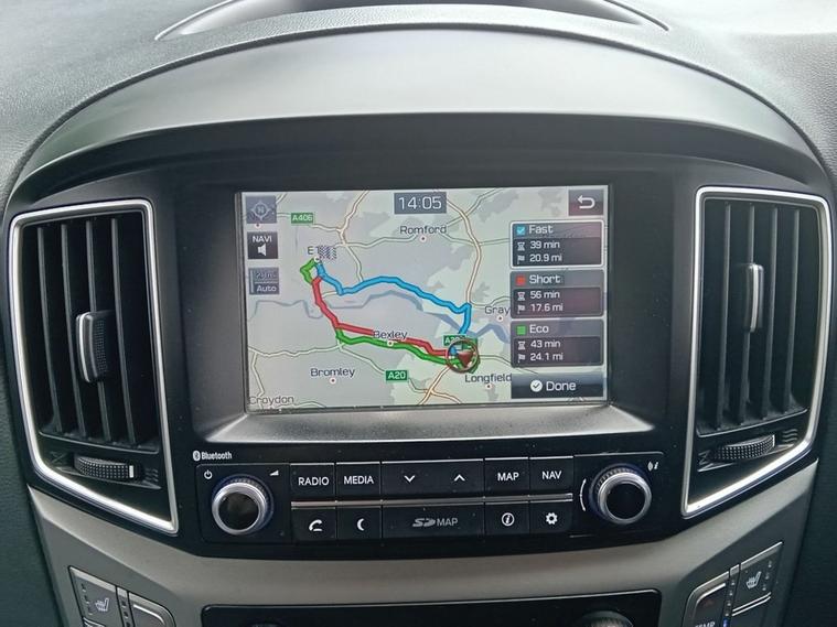 Eight Seats 7in Touchscreen Satellite Navigation including Traffic Messaging Channel - Mapcare and Live Services Parking System - Rear Camera and Guidance System Bluetooth Connectivity Air Conditioning Controls - Front and Second Row 16in Alloy Wheels One Owner Hyundai Service History 12V Power Outlet - Front Console ABS - Anti-Lock Brake System Airbags - Front Airbags - Front Side Alarm and Immobiliser Automatic Dimming Rear View Mirror Automatic Headlights with Dusk Sensor Bottle Holders - Front Centre Console - Front and Rear Doors Bumpers -Two Tone Bumpers Central Locking - Remote Control Childproof Rear Door Locks Cigarette Lighter and Ashtray Dash Trim - Alloy-Effect Digital Clock Door Courtesy Lights Door Handles - Body Coloured Door Mirrors - Electric Adjustment Driver Seat Height Adjustment Driver Seat Manual Adjustment EBD - Electronic Brake Force Distribution ESP - Electronic Stability Programme Electric Front Windows Electric Windows - One Touch Controls - Driver Front Seat Back Pockets Front Windscreen Wipers - Adjustable Intermittent Front and Rear Fog Lights Head Restraints -Vertical Adjustment - Front Headlights - Manual Beam Levelling Heated Front Seats ISOFIX Child Seat Anchorage Points - Second Row Interior Light - Map Reading Lights Interior Lights - LED Ambient Lighting Rear Leather Wrapped Steering Wheel and Gear Knob Map Pocket Mud Flaps - Front and Rear Parking Sensors - Rear Power Assisted Steering Privacy Glass - Rear Windows and Tailgate Radio - Stereo - RDS with MP3 Compatibility Seatbelt Pre-Tensioners - Front Seatbelts - Height Adjustable Driver and Front Side Passenger Seats - 60-40 Split Reclining Third Row Seats - 60-40 Split Sliding and Reclining Second Row Side Body Moulding Sliding Rear Side Doors Spare Wheel - Full Size - Steel Speakers - 2 Tweeters - 2 Front - 2 Rear Steering Wheel - Tilt and Telescopic Adjustment Steering Wheel Audio and Phone Controls Sun Visors with Vanity Mirrors and Illumination Sunglasses Holder Towing Hook Traction Control Trip Computer Tyre Pressure Monitoring System - TPMS USB and AUX Connections Windows - Flush Sliding Side