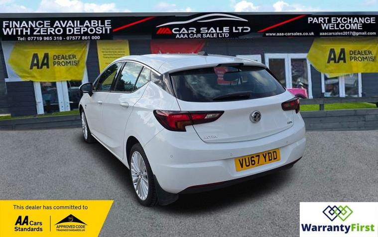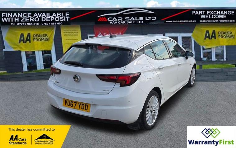 **AAA CAR SALES DARLINGTON LTD HAVE THE PLEASURE TO PRESENT THIS VAUXHALL ASTRA 1.6 CDTi BlueInjection Elite Hatchback 5dr Diesel Manual Euro 6 (s/s) (136 ps) IN SUMMIT WHITE PAINTWORK, .SERVICE HISTORY=9K, 18K, 25K, 32K, 39K, 46K AND A FULL SERVICE BY OUR TEAM @ 68K, 2 KEYS ..ALL OUR CARS GO THROUGH 72 POINT INSPECTION, ALL OF OUR CARS COME WITH 12 MONTHS AA BREAKDOWN COVER, FRESH MONTH MOT WITHOUT ADVISORIES, INTERIM SERVICE, HPI CHECKED VIA EXPERIAN, 3 MONTHS WARRANTY WITH THE OPTION TO UPGRADE ***AUTOTRADER CUSTOMER SERVICE AWARD 2019, 2020, 2021, 2022, 2023 & 2024 YEAR ON YEAR***, WE ARE OPEN 7 DAYS A WEEK FOR YOUR CONVIENIENCE, CALL 01325950841 OR EMAIL US AT hello dealer's website or visit our website dealer's website Good bodywork, Black Cloth interior - Good Condition, Tyre condition Good, YOU CAN BUY WITH FULL CONFIDENCE FROM AAA CARS CHECK OUR AUTOTRADER REVIEWS FOR FULL PEACE OF MIND,