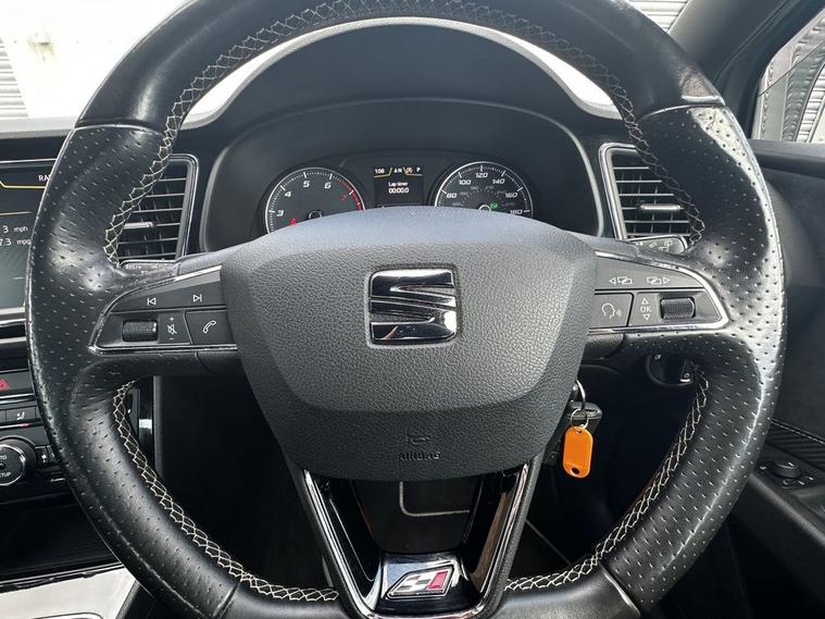 - Flat Bottomed-Perforated Leather Steering Wheel with White Stitching and CUPRA Logo